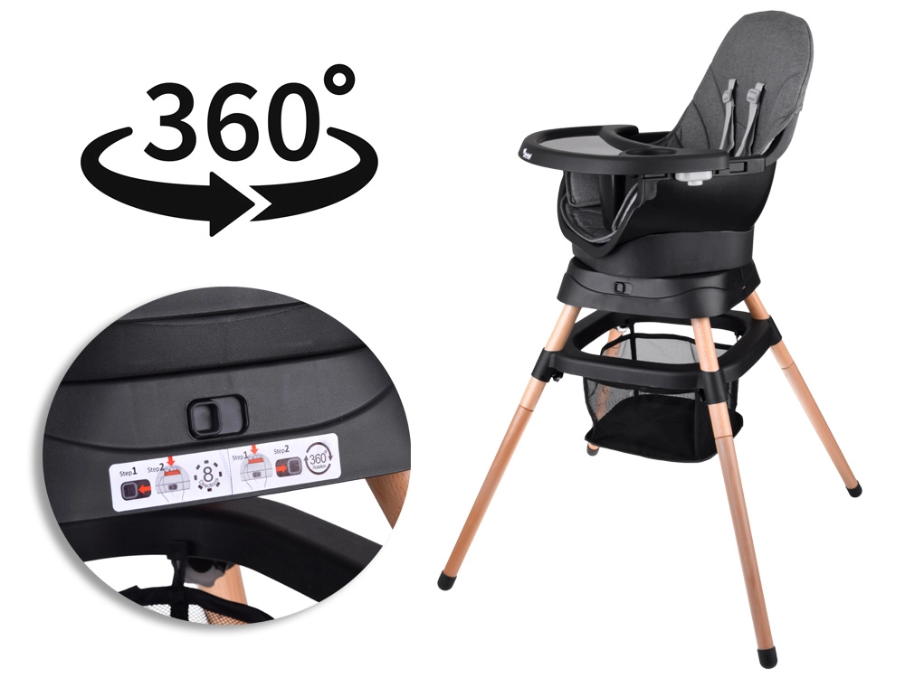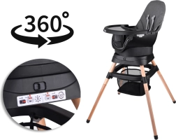 Pratico seggiolone 6 in 1 che si adatta alla crescita del bambino – dalle prime pappe fino alla seduta e al gioco in autonomia. Offre seduta girevole a 360°, cinture a 5 punti, vassoio regolabile e lavabile, struttura stabile e manutenzione facile. Il design moderno ed ergonomico si integra perfettamente in qualsiasi interni.