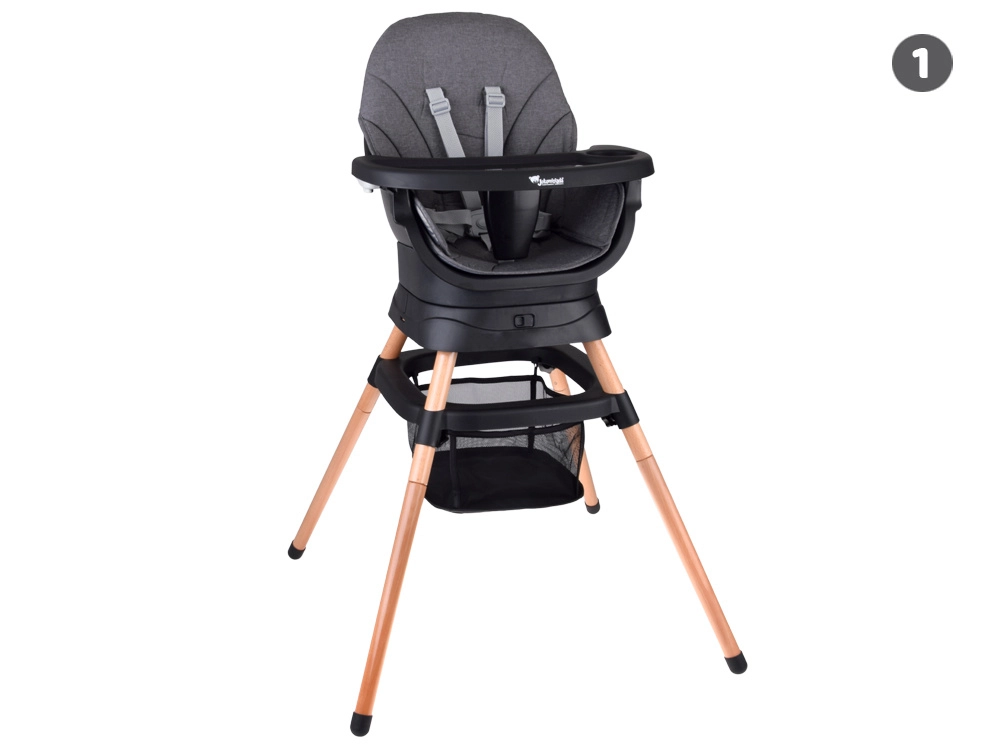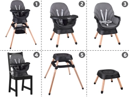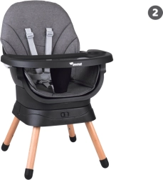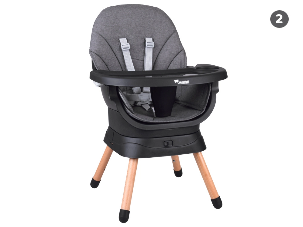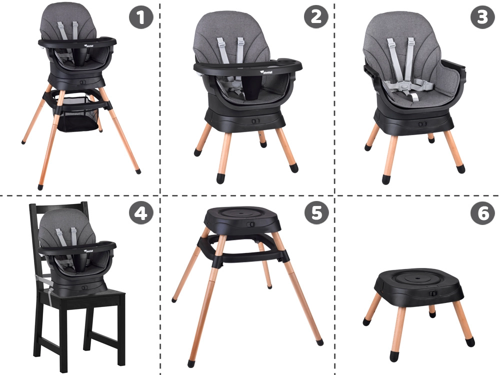 - 6 funzioni in una – seggiolone, seggiolina bassa, poltroncina, rialzo per sedia, sgabello alto, sgabellino basso.