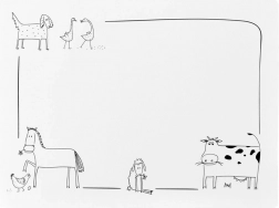 Illustrazioni minimaliste in bianco e nero degli animaletti donano alla tavola un tocco giocoso e si abbinano agli interni moderni.