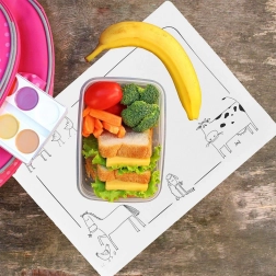La tovaglietta protegge il piano da macchie, briciole e graffi: perfetta sotto il piatto e come copertura durante le attività creative.