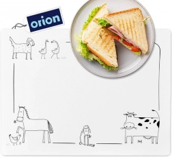 La tovaglietta bianca con disegni neri di animaletti crea uno sfondo d’effetto per i tuoi pasti e al tempo stesso protegge in modo affidabile il tavolo e il piano di lavoro. È leggera, sottile e facile da trasportare: ideale per cucina, sala da pranzo e cameretta.