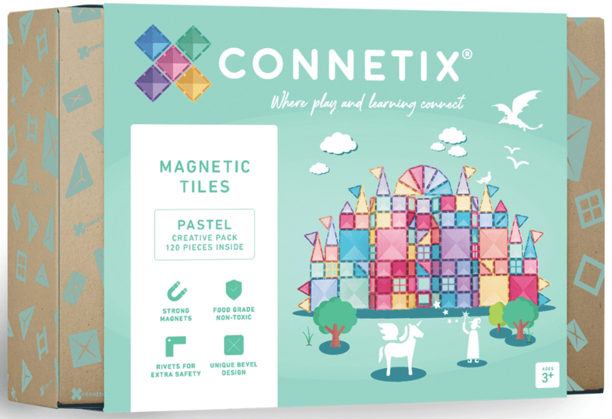 Il set CONNETIX Pastel Creative Pack offre 120 tessere magnetiche trasparenti in delicati colori pastello per creare castelli, ponti e torri futuristiche. Grazie ai potenti magneti al neodimio i pezzi si attraggono da ogni lato e formano strutture stabili che favoriscono le competenze STEM/STEAM – dalla fisica del magnetismo alla geometria spaziale.