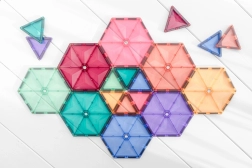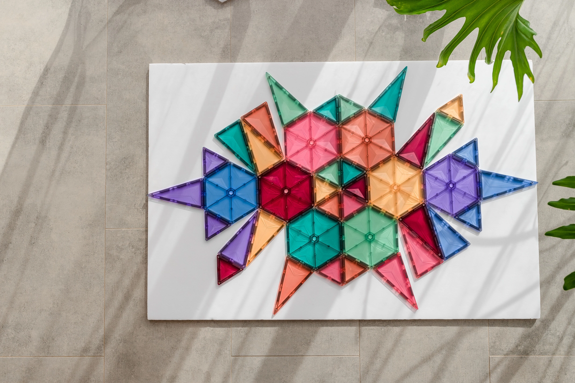 Include triangoli e esagoni per creare motivi 2D e oggetti 3D. Ideale per sviluppare simmetria, relazioni spaziali e pattern.