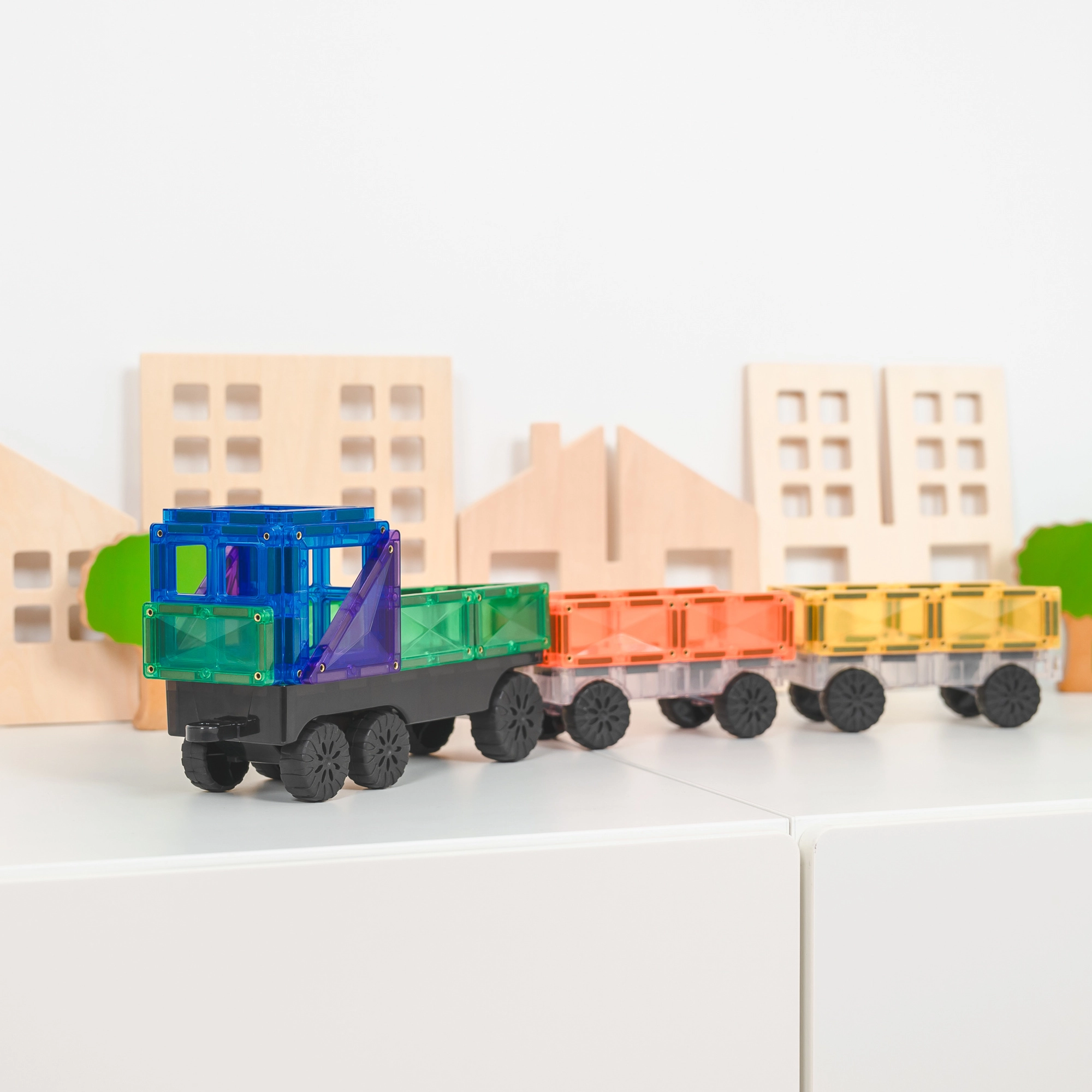 - Gioco creativo aperto – costruisci veicoli, vagoni, ponti e intere scene di trasporto.