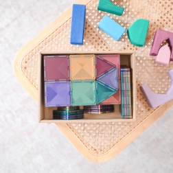 Il Pastel Starter Pack CONNETIX offre 64 piastrelle trasparenti in colori delicati con cui i bambini possono costruire torri, castelli, ponti e razzi. Grazie ai magneti lungo i bordi, i pezzi si uniscono da ogni lato, le strutture sono solide e il piacevole “click” invoglia a continuare a esplorare. Il set è perfetto per sviluppare le competenze STEAM: dal magnetismo e dall’equilibrio alla simmetria e alla geometria 2D/3D.