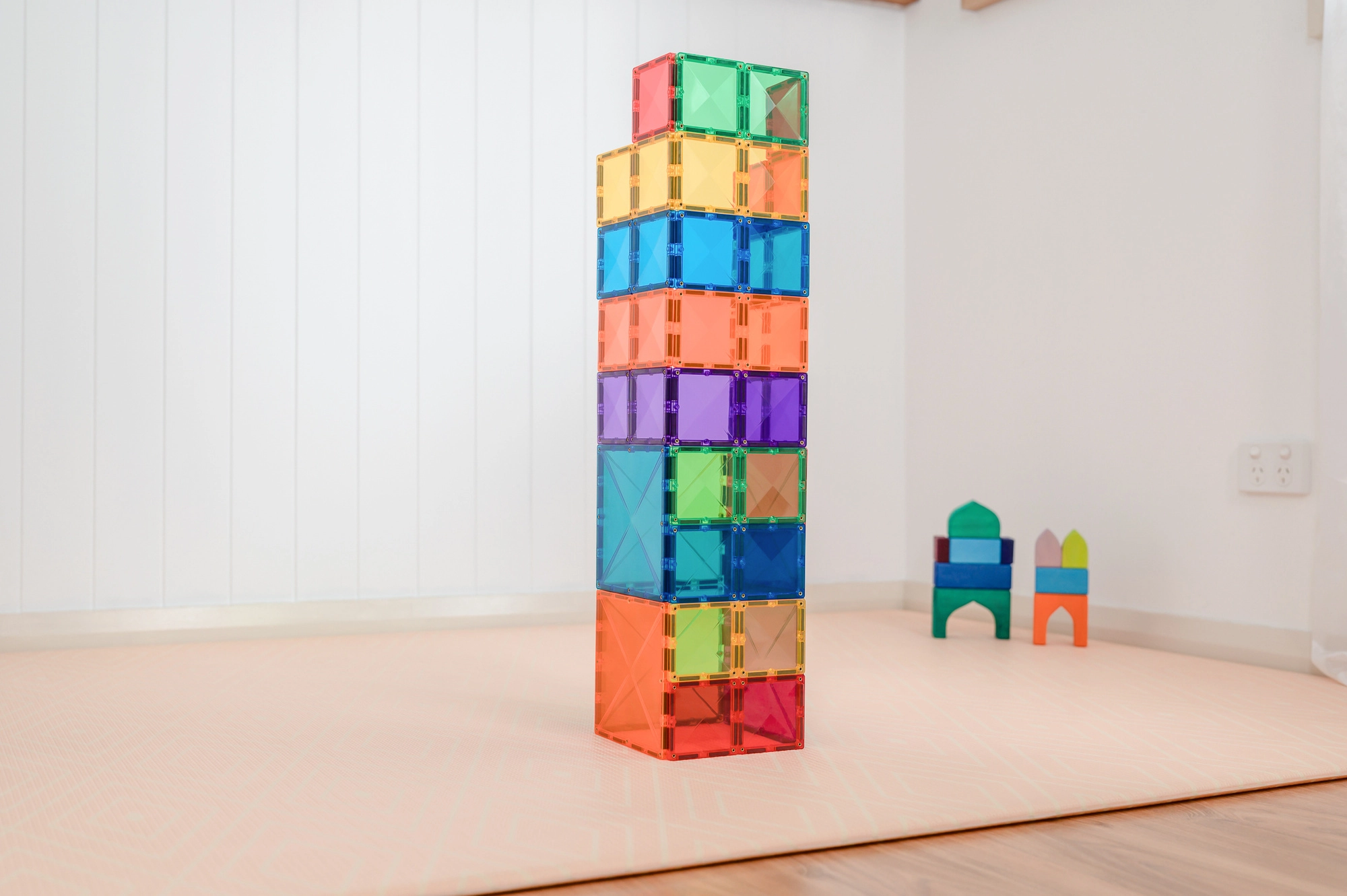 Ogni pezzo contiene magneti al neodimio ribattuti che si attraggono da tutti i lati. Le strutture risultano solide, stabili e facili da ampliare in altezza e in larghezza.