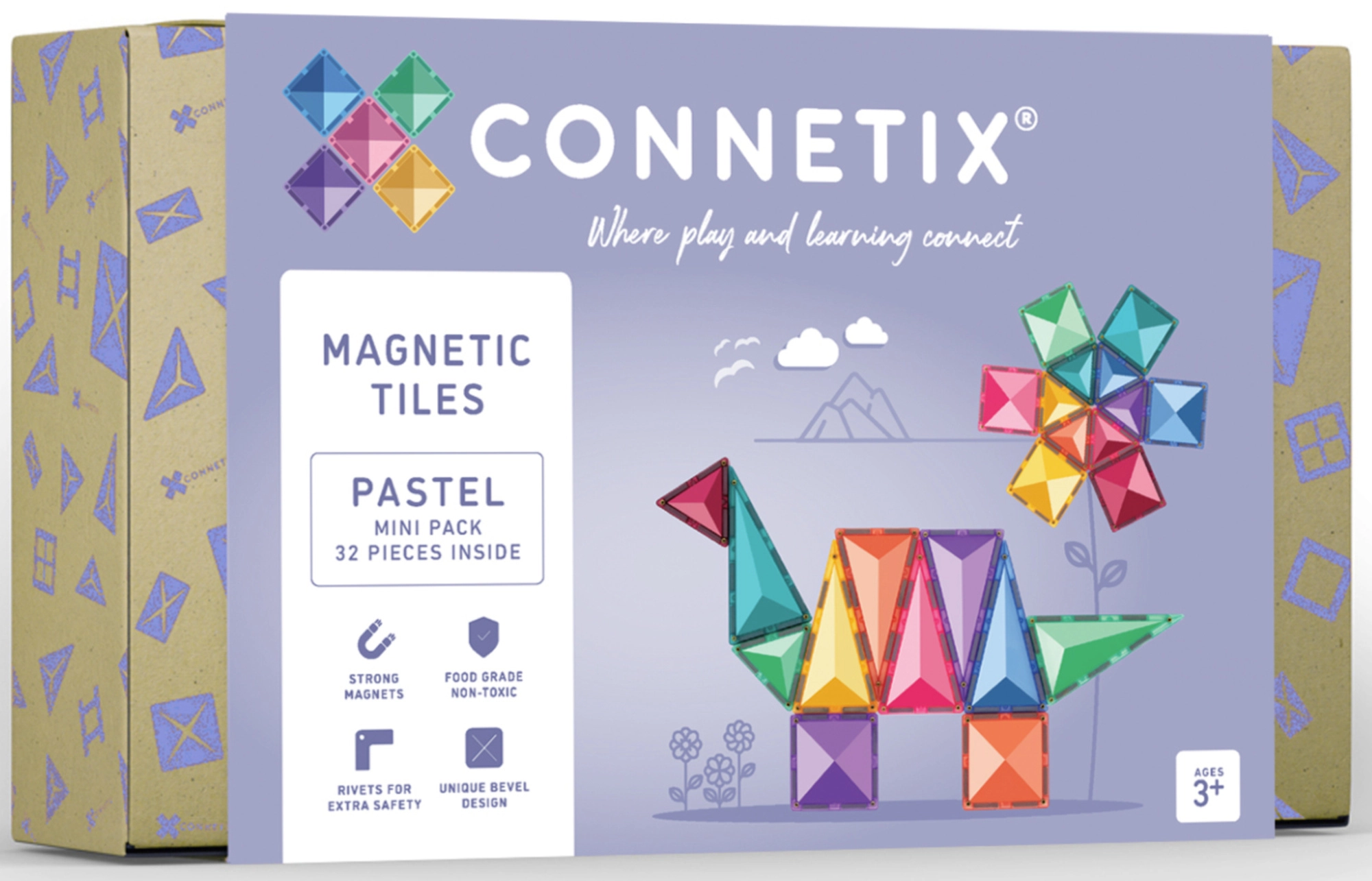Il Pastel Mini Pack di CONNETIX è l’introduzione ideale alle costruzioni magnetiche. I bambini collegano facilmente le tessere trasparenti e creano castelli, ponti e razzi, imparando in modo naturale geometria, magnetismo ed equilibrio. La plastica ABS di qualità, priva di BPA e ftalati, e le robuste giunzioni rivettate assicurano lunga durata anche con un uso entusiastico.