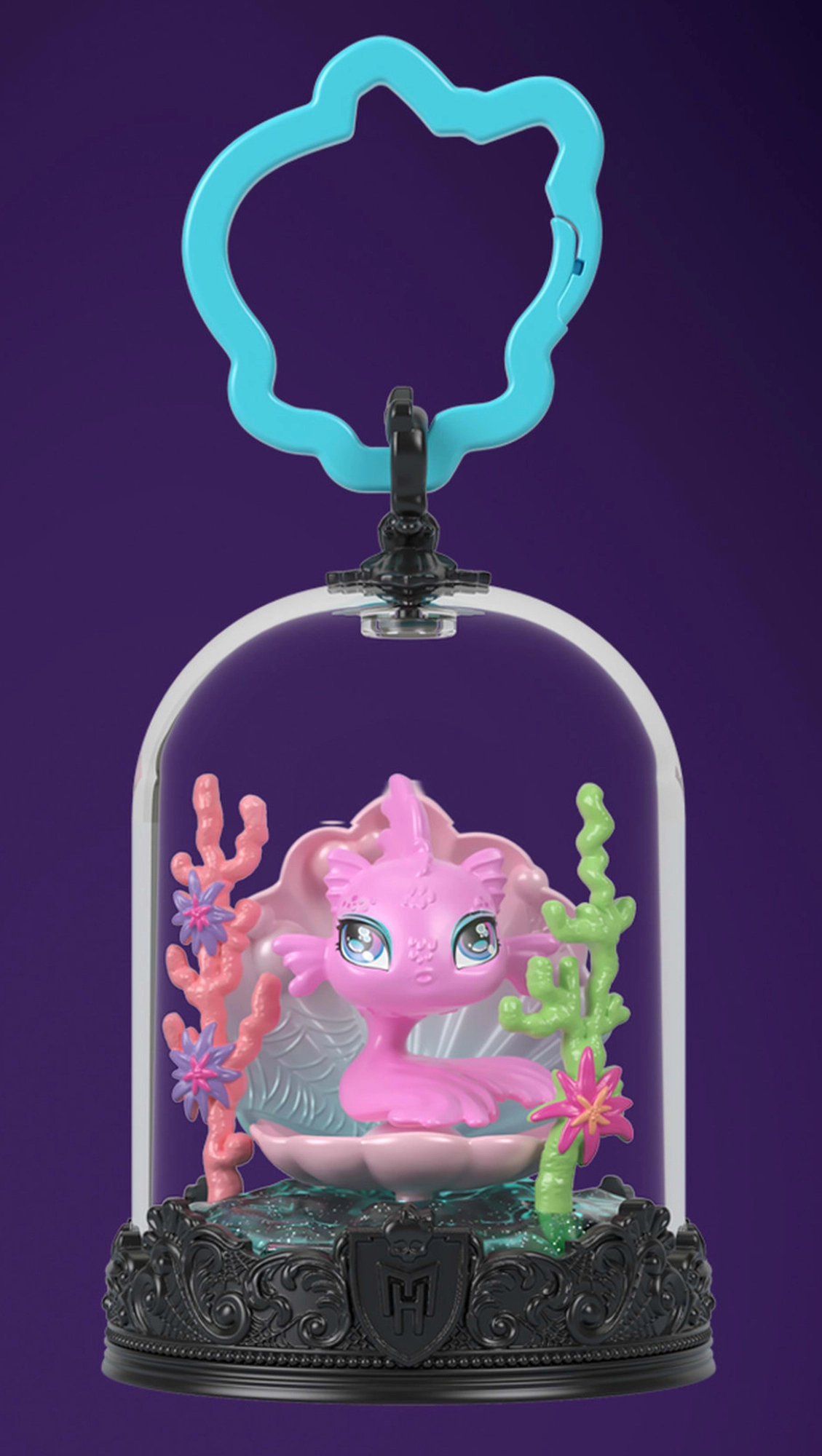 La figurina di Neptuna ha colori pastello delicati, occhi espressivi e dettagli curati. La cupola funge da custodia protettiva e vetrinetta espositiva, così la figurina resta al riparo dalla polvere. Grazie alla clip pratica, la agganci facilmente a zaino, borsa o chiavi.