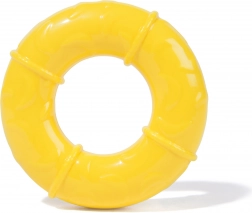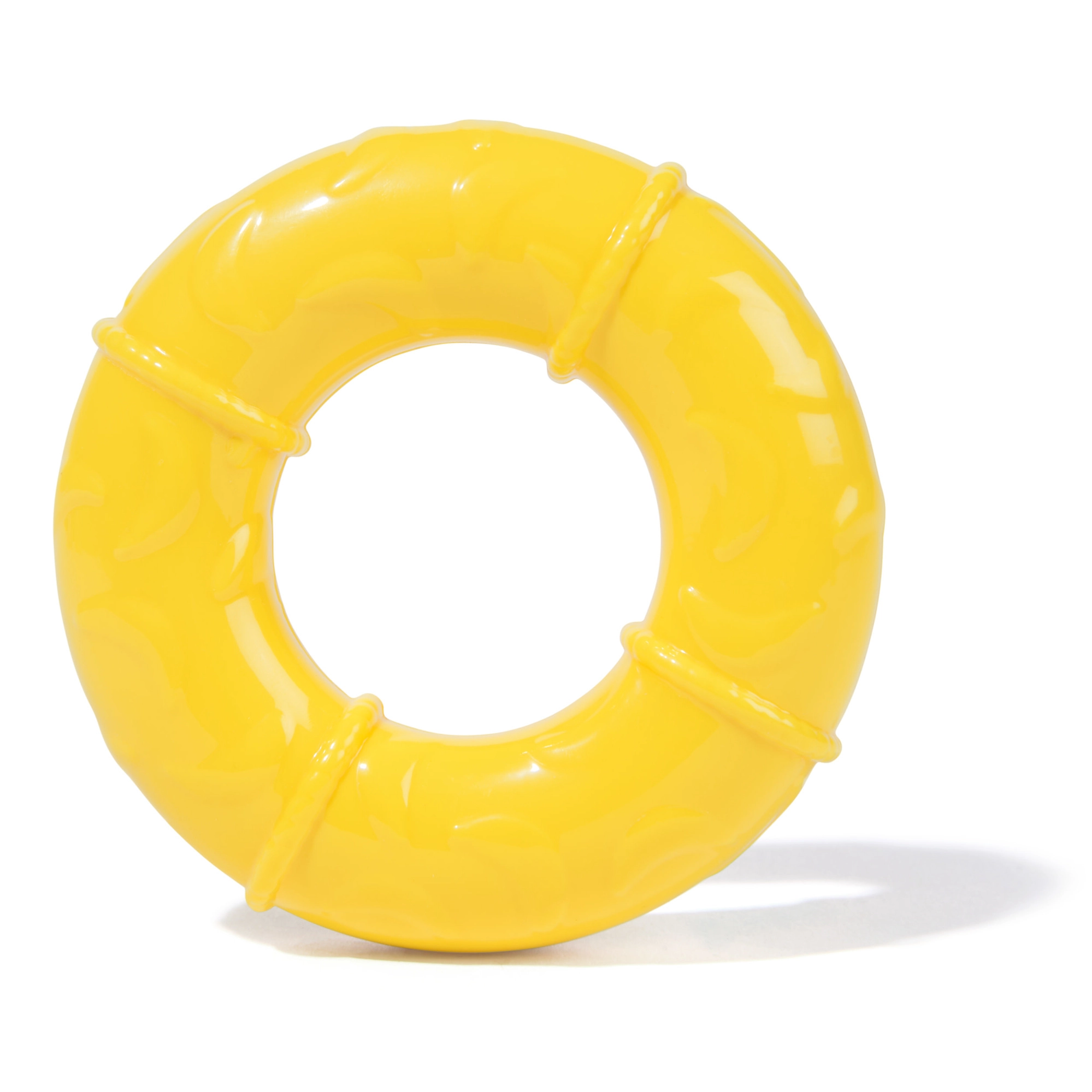 Il grande salvagente giallo mantiene i personaggi stabili sulla superficie dell’acqua e invita a giocare sia nella vasca da bagno che fuori.