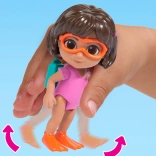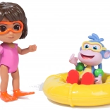 Esplora il mondo dell’acqua e del divertimento con il set con licenza ispirato all’amata serie DORA. I bambini trascorreranno ore a inventare storie con Dora in attrezzatura da immersione e il suo amico Boots. Grazie agli arti snodabili, i personaggi si posizionano facilmente per creare scene d’azione in piscina e nella vasca.