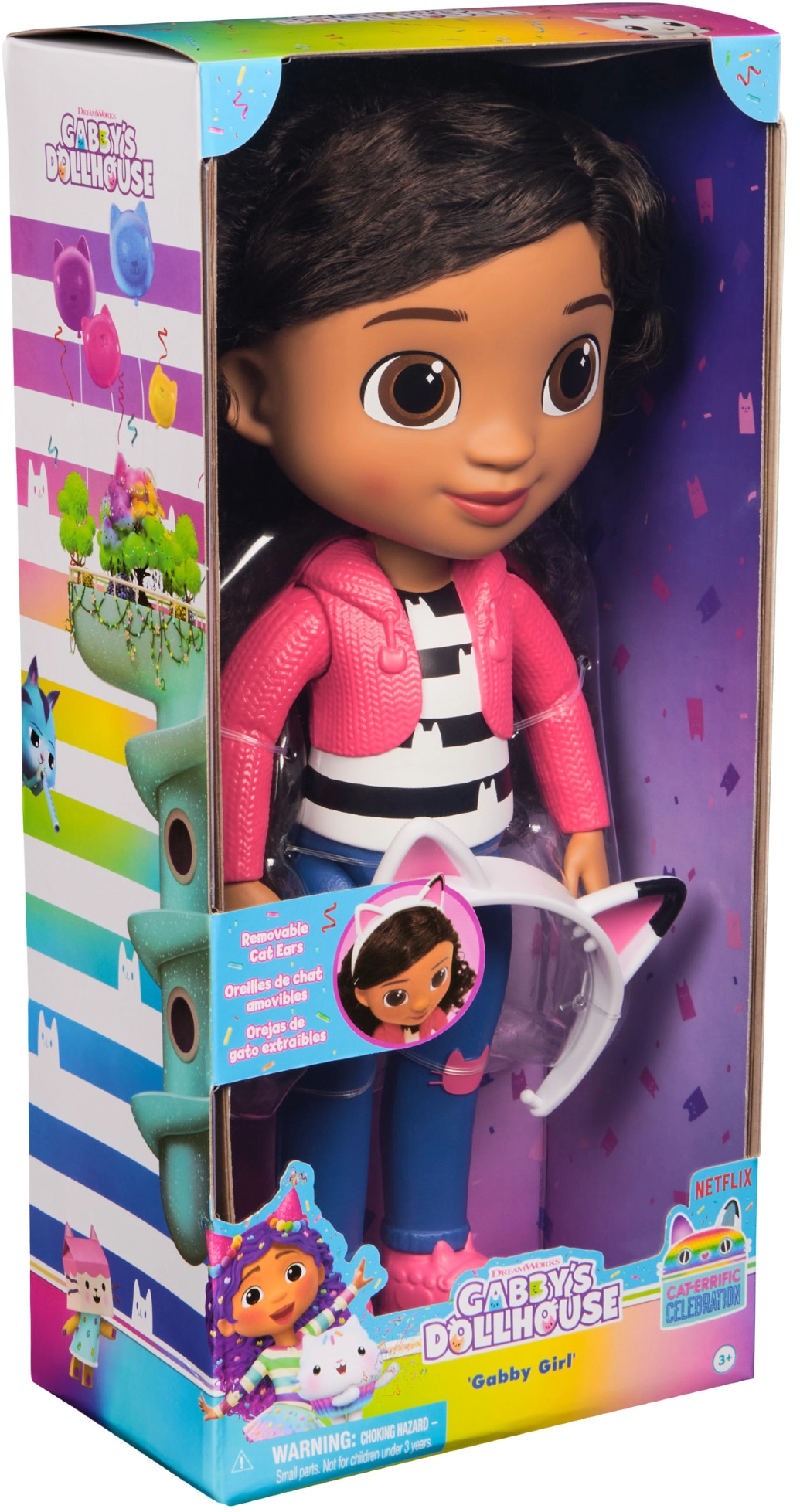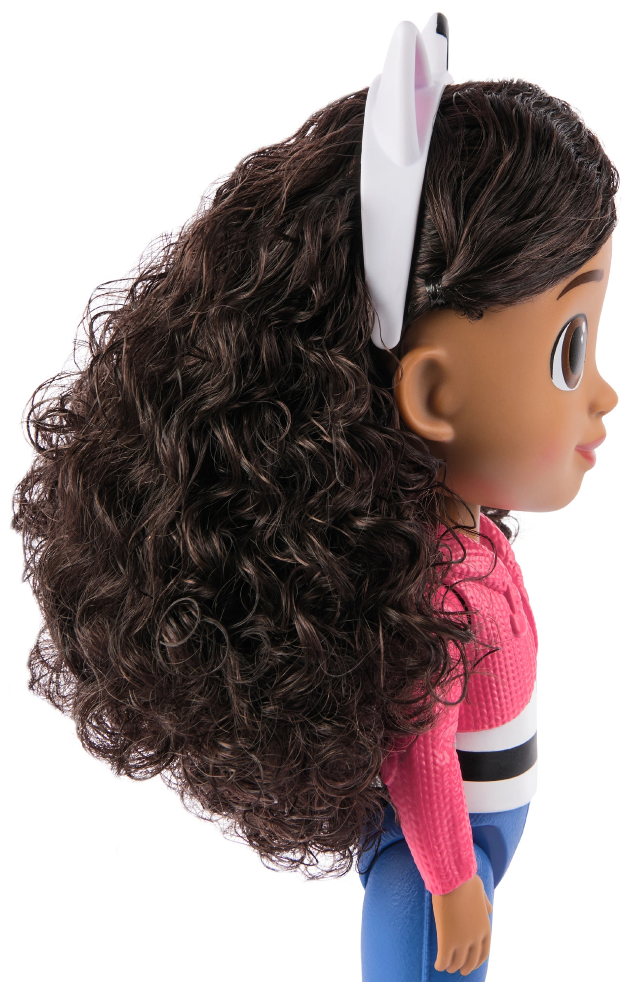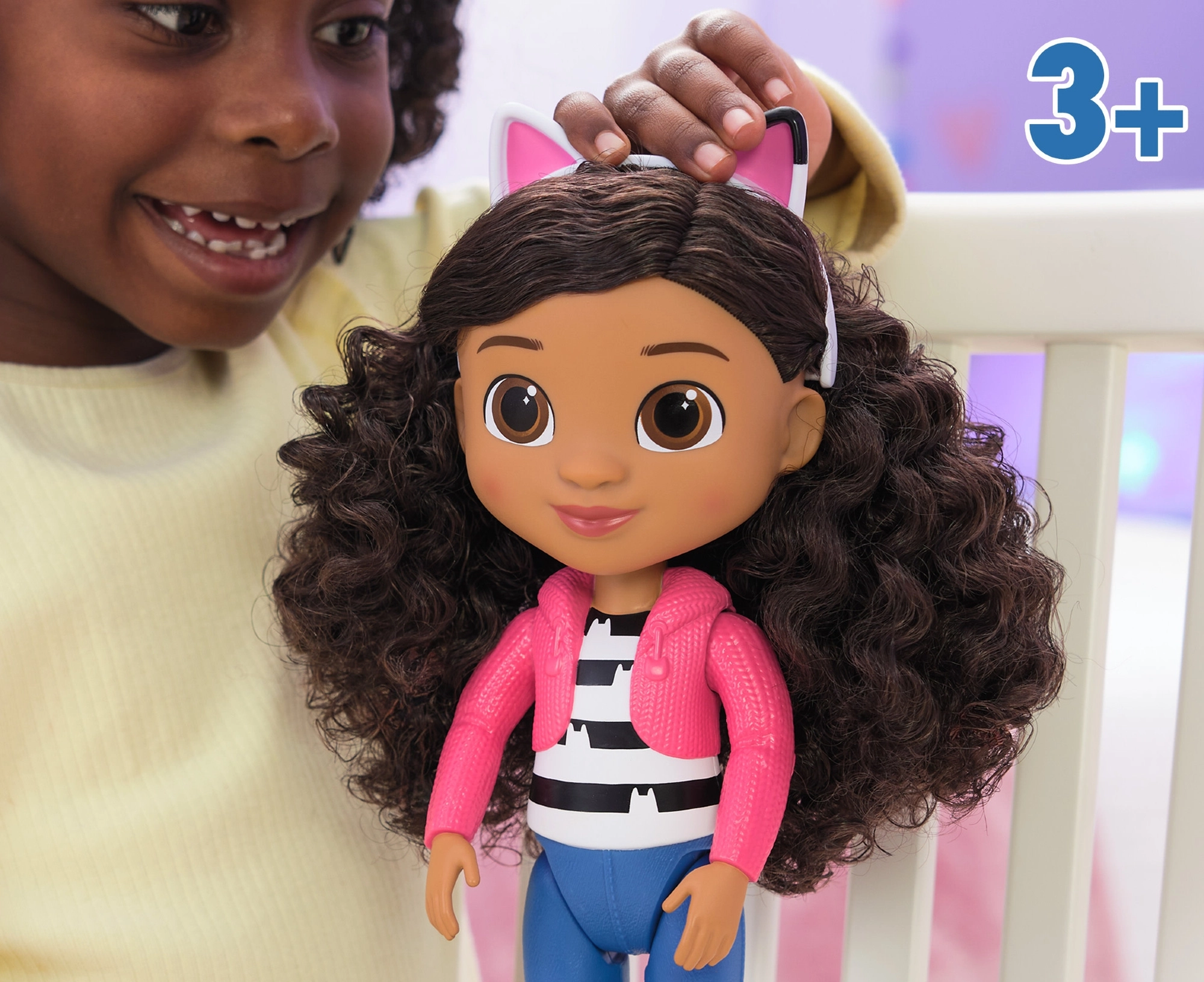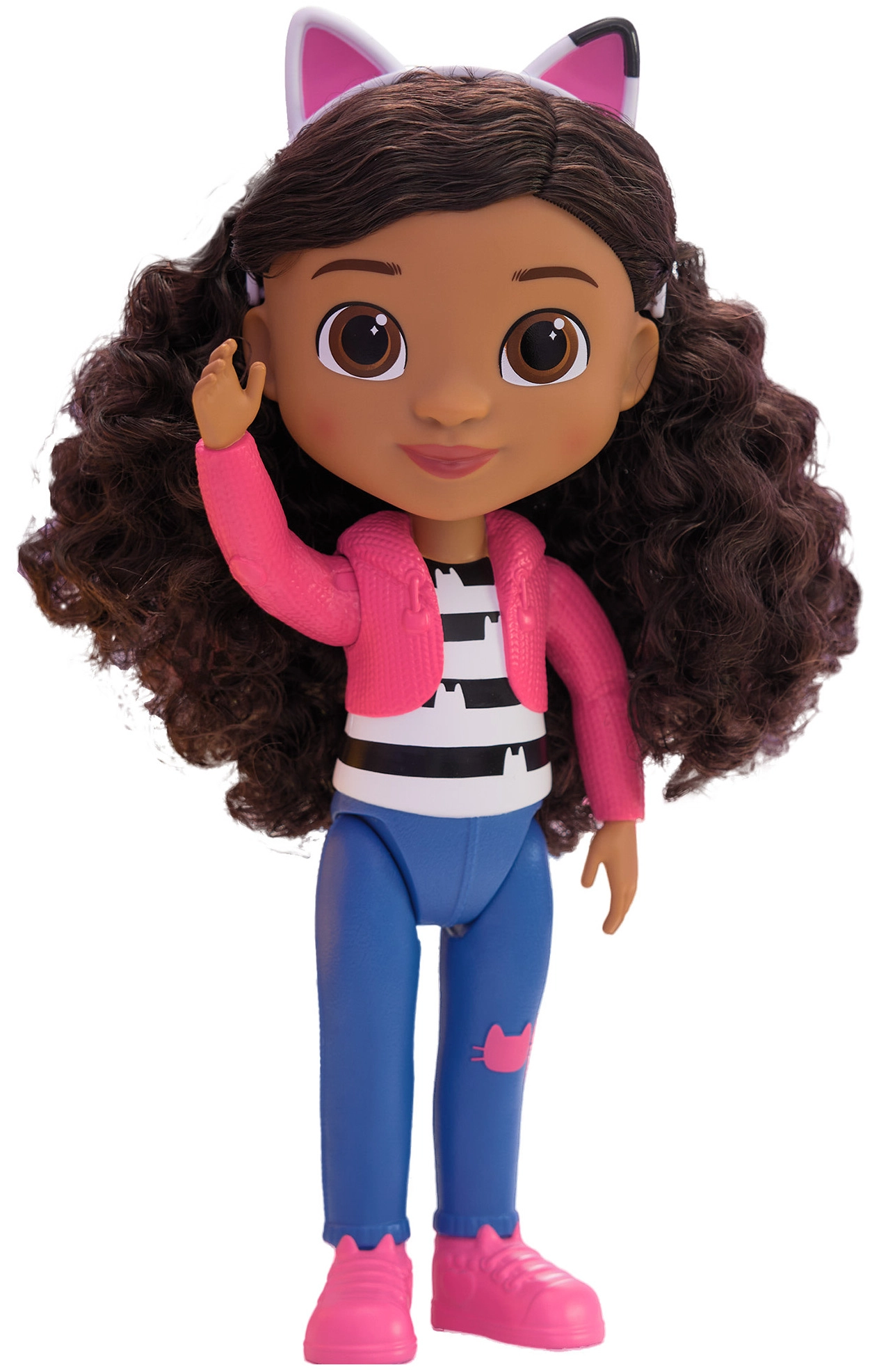 La dolce bambola Gabi della serie preferita GABBY'S DOLLHOUSE farà felice ogni bambino. Ha braccia, gambe e testa snodate, lunghi capelli ricci e indossa un abbigliamento alla moda con jeans e cardigan rosa. Inclusa una fascia con orecchiette da gatta per ancora più divertimento e gioco di fantasia.