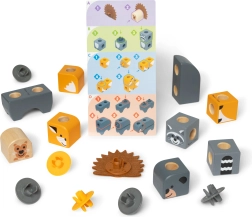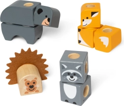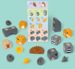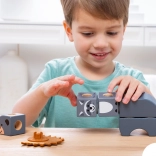 I pezzi con stampe di visi e corpi di animali si possono combinare in simpatiche figurine e creazioni personalizzate. Stimola l'immaginazione e il gioco autonomo.