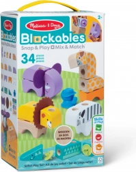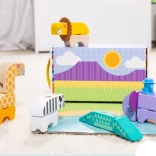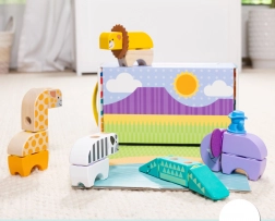 I bambini possono facilmente assemblare e combinare le parti degli animali (leone, zebra, giraffa, coccodrillo, ippopotamo) per creare personaggi originali che stimolano la fantasia e il racconto di storie.