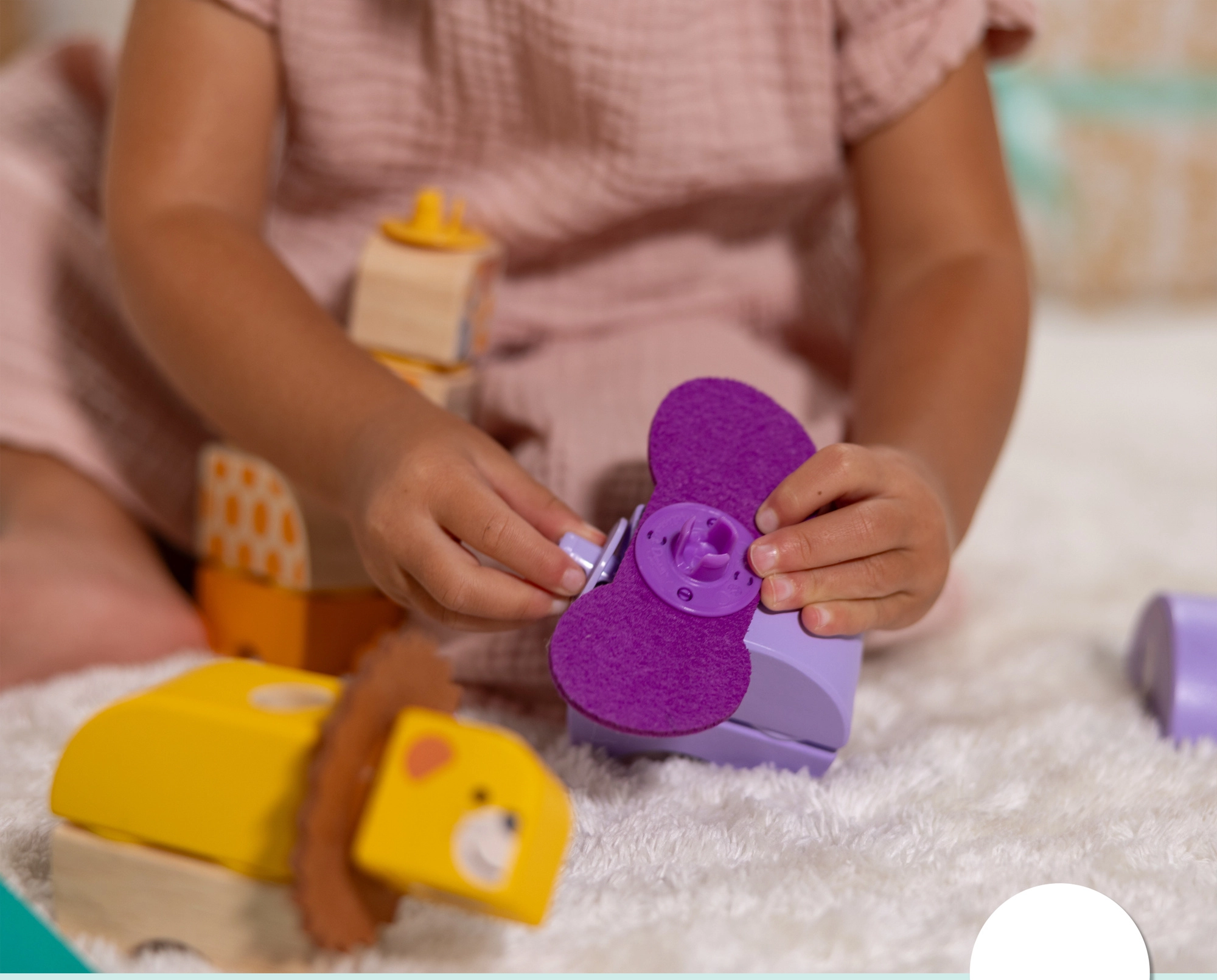 I blocchi robusti e lisci sono sicuri e facili da afferrare. Sostengono lo sviluppo della motricità fine e della coordinazione mano-occhio già dai 2 anni.