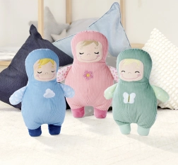 La superficie a costine, soffice al tatto, e l’imbottitura vaporosa rendono questa bambola il compagno ideale per tranquillizzarsi e per sogni d’oro.