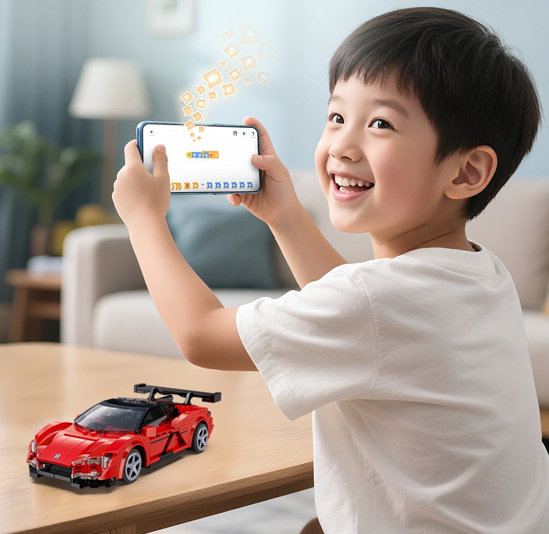 Il modello raggiunge una velocità fino a 3,8 km/h e grazie al doppio sistema di controllo puoi scegliere se guidare con il telecomando a 2,4 GHz incluso oppure tramite app sul telefono con diverse modalità intelligenti. Ottima scelta per bambini dai 6 anni in su che amano la tecnologia, la costruzione creativa e il gioco dinamico.