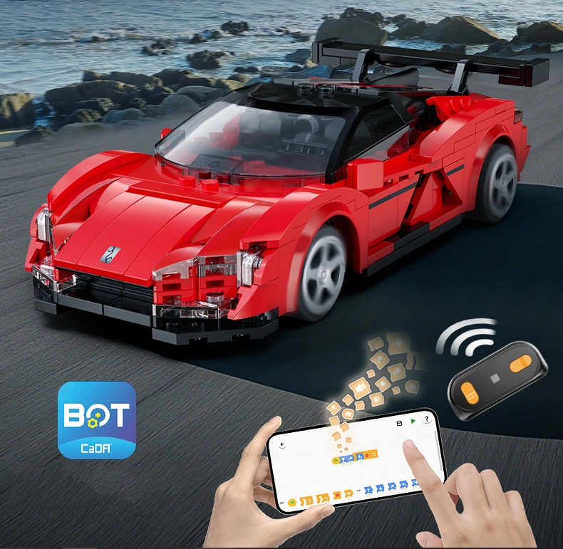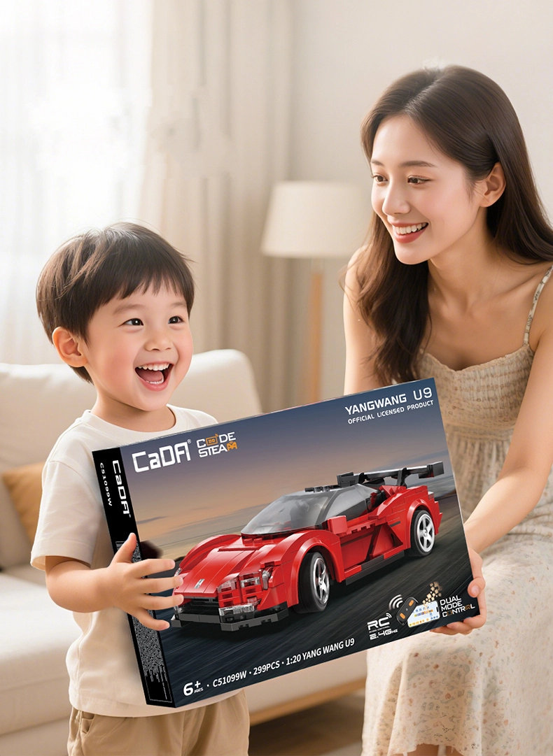 Costruisci la realistica auto da corsa YANGWANG U9 del marchio CaDA e controllala a distanza con il controller a 2,4 GHz o tramite app Bluetooth. Modello in scala 1:20 con 299 pezzi, offre design con licenza, linee aerodinamiche e una portata fino a 20 m. Set ideale per piccoli e grandi appassionati di auto veloci e sfide tecniche.