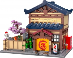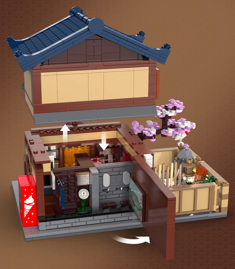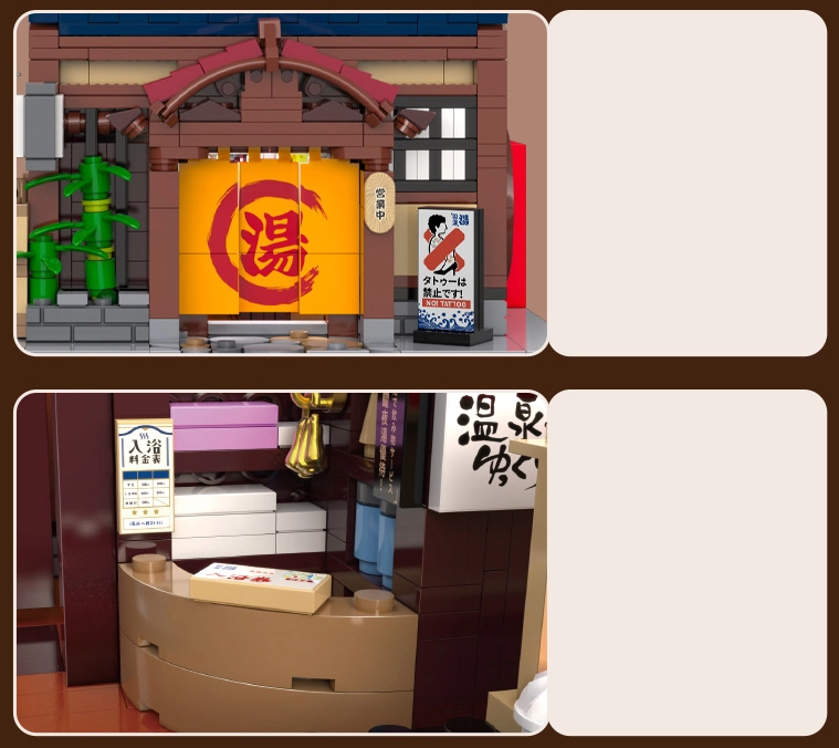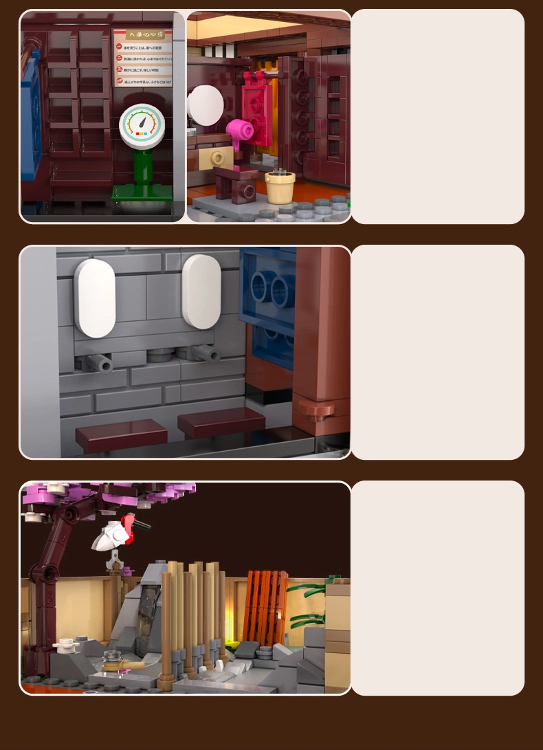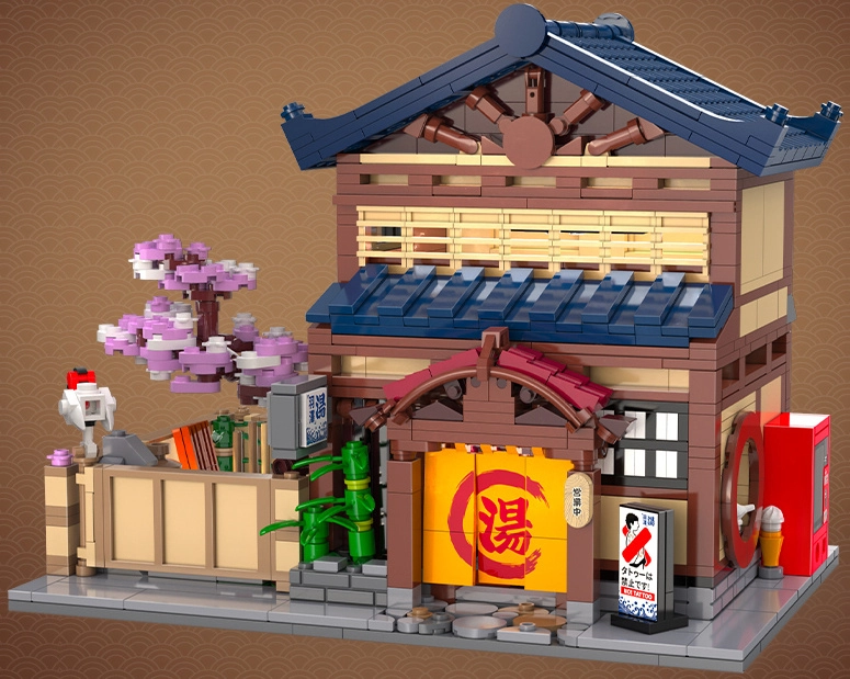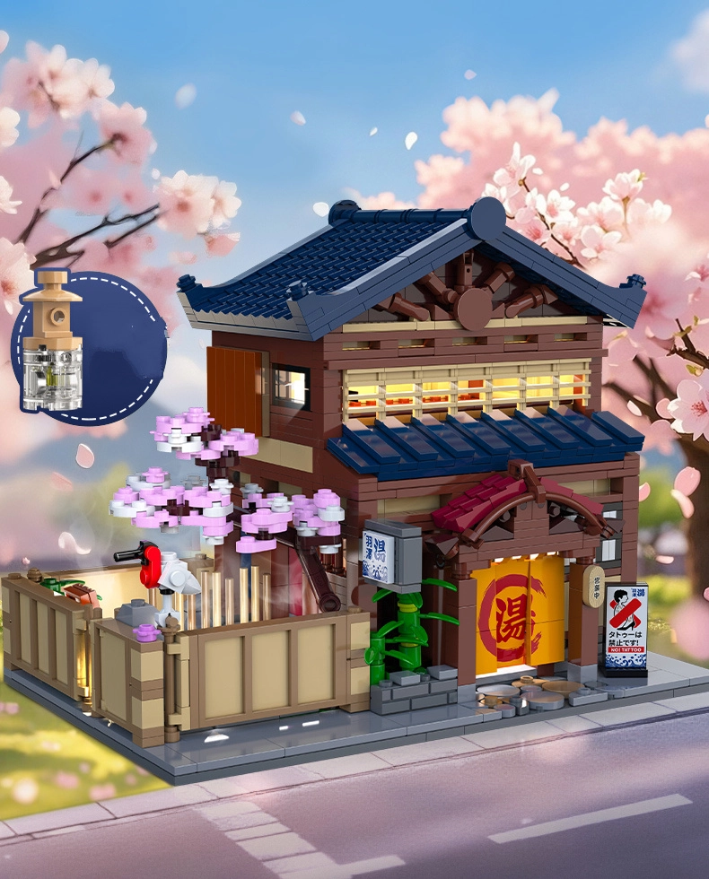 Questo modello dettagliato del tradizionale bagno giapponese Sento porta l’autentica atmosfera dell’Estremo Oriente direttamente nella tua collezione. La facciata esterna colpisce per i dettagli architettonici, come il frontone, i fiori di sakura e gli elementi tipici dello stile giapponese. Grazie alle pareti apribili puoi sbirciare facilmente all’interno e apprezzare gli ambienti arredati in modo realistico.