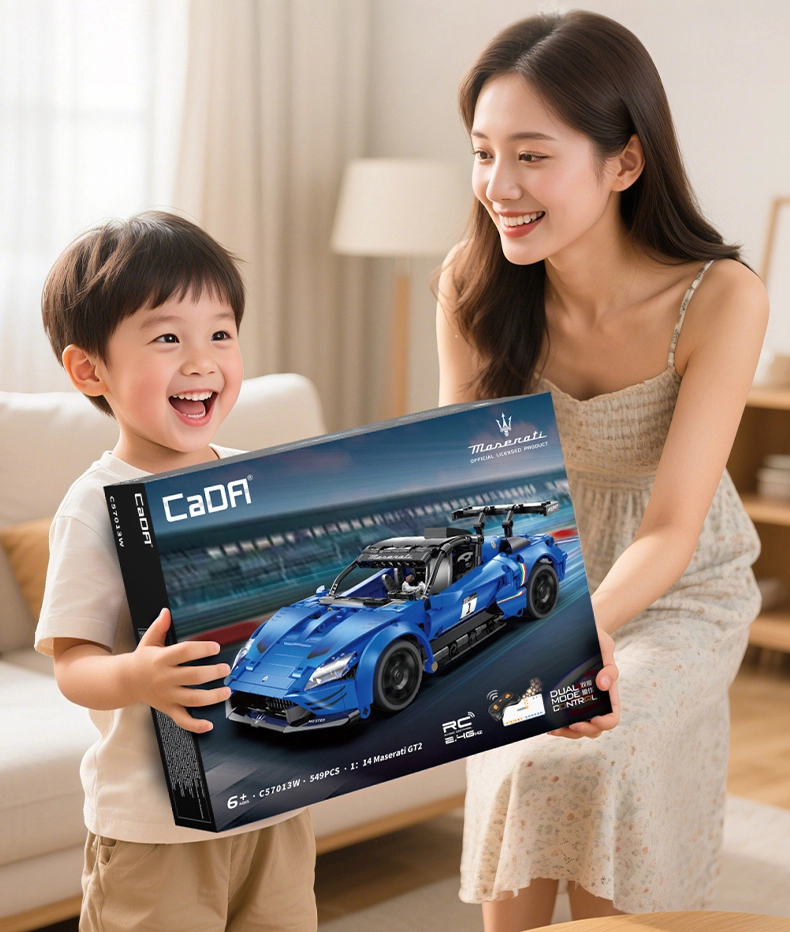 Questo set tecnico CaDA unisce il piacere della creazione con la moderna tecnologia di controllo. Una volta montato, avrai un modello accuratamente realizzato della MASERATI GT2 con sterzo funzionante e gomme in gomma, perfetto in esposizione e pronto all’azione su pista. Grazie al controllo RC tramite controller o smartphone, il divertimento è sempre a portata di mano.