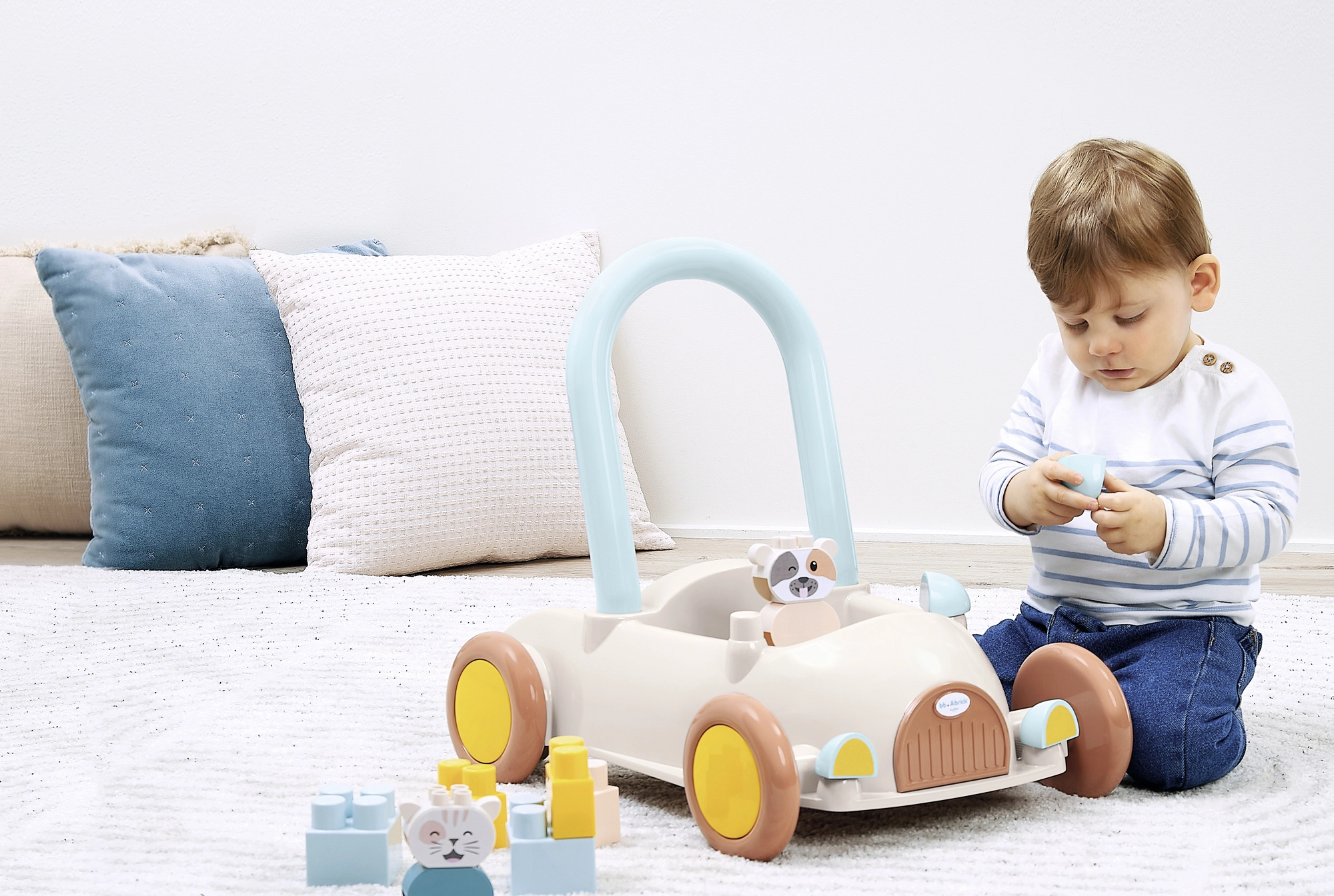 Scoprite la macchinina spingibile multifunzione con blocchi, che aiuta i più piccoli nei primi passi e li intrattiene con le costruzioni. La macchinina ha una pratica maniglia per spingere o trainare, ruote larghe per un movimento sicuro e spazio interno per i blocchi. Include circa 16 elementi da costruzione e due simpatici personaggi, gattina e mucca, che stimolano la fantasia e il gioco di ruolo.