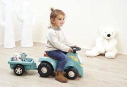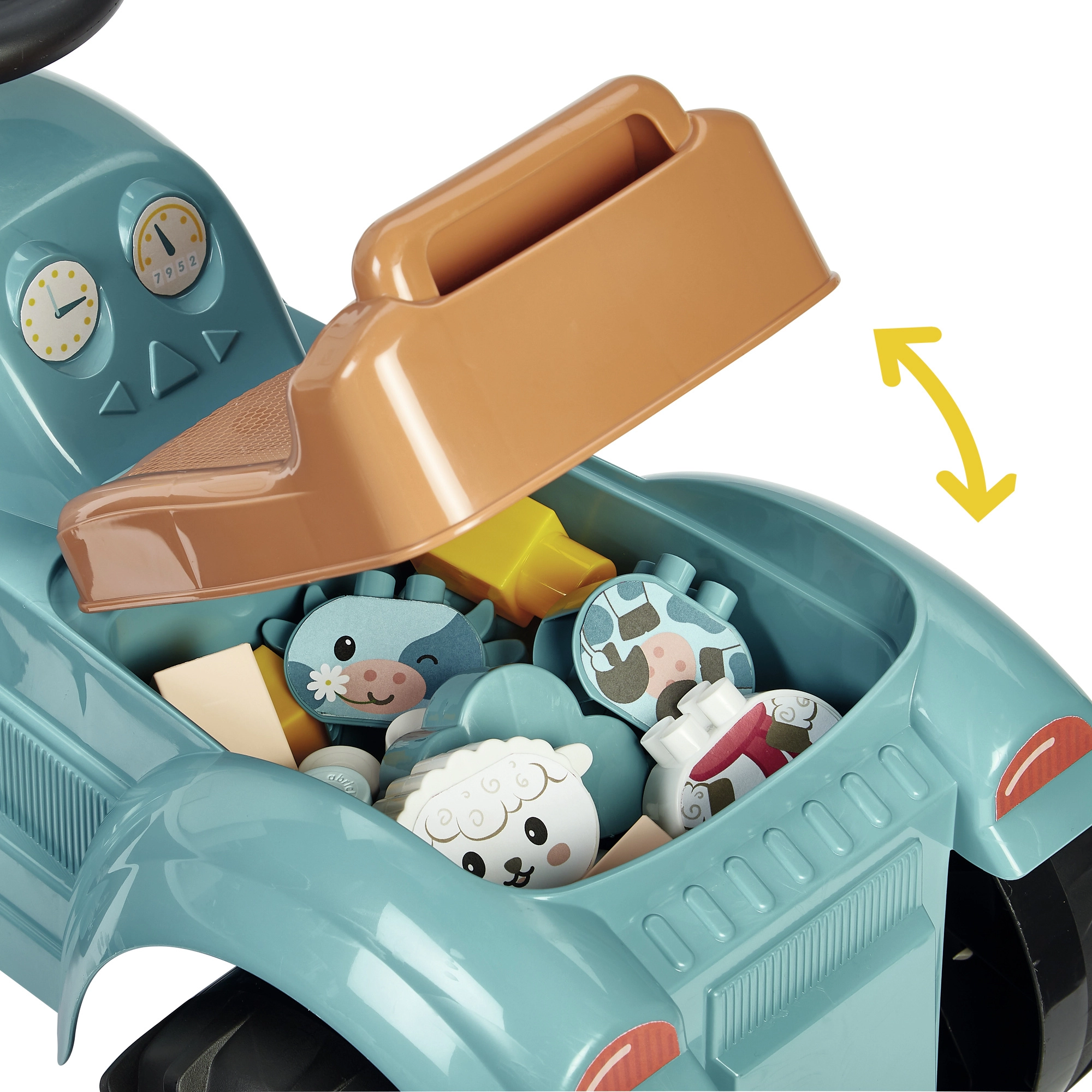 Scoprite il divertente trattore cavalcabile per i più piccoli con rimorchio staccabile e set di mattoncini ABRICK. I bambini da 12 a 36 mesi si divertiranno con la guida con sterzo funzionante, la robusta struttura in plastica e il vano portaoggetti sotto il sedile. Inclusi 15 mattoncini, compresi pezzi per assemblare animaletti – mucca e pecora. L’intero set sviluppa motricità, fantasia ed equilibrio.