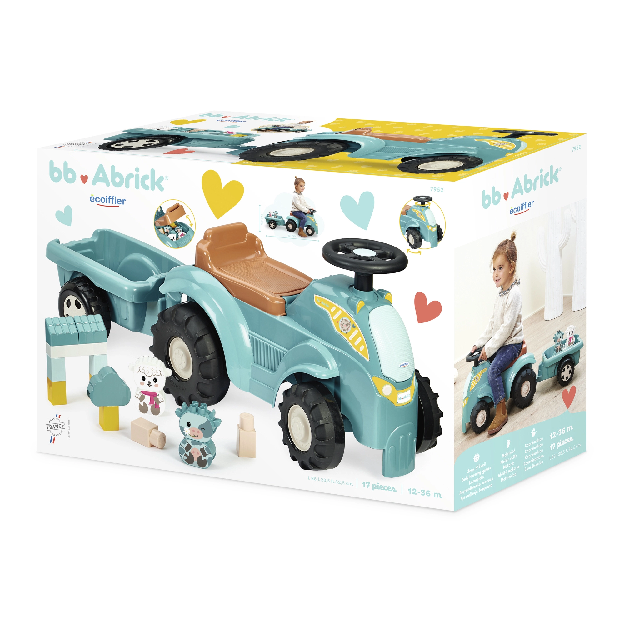 Questo robusto trattore per bambini con rimorchio del marchio ÉCOIFFIER della linea ABRICK è pensato per le prime corse in salotto e in giardino. Grazie alle grandi ruote e al sedile confortevole, la guida è stabile e sicura, mentre il rimorchio staccabile può trasportare mattoncini e giochi preferiti. Il pratico vano nascosto sotto il sedile tiene i piccoli oggetti sempre a portata di mano.