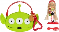 La mini bambola con lunghi capelli biondi indossa un completo alla moda con il motivo dell’alieno di TOY STORY. Il look è completato da scarpe sportive e da una mini borsetta a forma di testa di alieno. Inclusa anche una grande borsa rosa da trasporto con motivo alieno, nella quale riporre facilmente la bambola e i suoi piccoli accessori – ideale per giocare a casa e in viaggio.