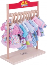 L'appendiabiti viene fornito senza vestiti o grucce, incoraggiando i bambini ad ampliare la propria collezione di abiti per bambole.