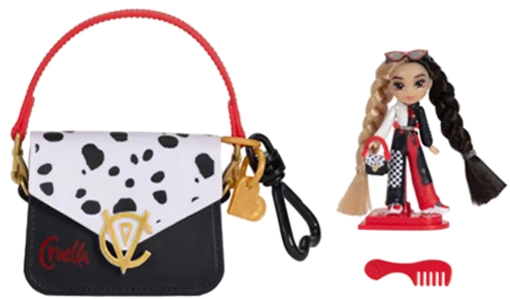 La mini bambola Disney ILY 4Ever porta un tocco di stile e gioco in ogni collezione per bambini. Il design ispirato a Crudelia de La carica dei 101 combina colori a contrasto e iconici pois, facendo risaltare la bambola sia durante il gioco che sullo scaffale.