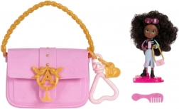 - mini bambola, borsetta con lettera “A”, pettine, occhiali da sole, supporto, borsa rosa da trasporto