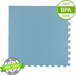 Sicurezza e comfort per i neonati fin dai primi giorni: la schiuma EVA elastica è morbida, attutisce le cadute e isola dal pavimento freddo. Grazie alla superficie antiscivolo favorisce strisciamento, gattonamento e primi passi in sicurezza. Il colore neutro azzurro chiaro non distrae e si abbina all’arredo.