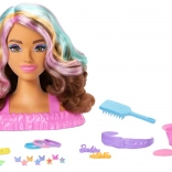 Diventa una piccola parrucchiera con la testa per acconciare BARBIE e un ricco set di accessori. I lunghi capelli castani con ciocche pastello invitano a creare treccine, chignon e code. Inclusi clip e elastici, spazzola, cerchietto e divertenti effetti cambio colore su mollette e labbra tramite spugnetta. Ideale per il gioco creativo e lo sviluppo della motricità fine.