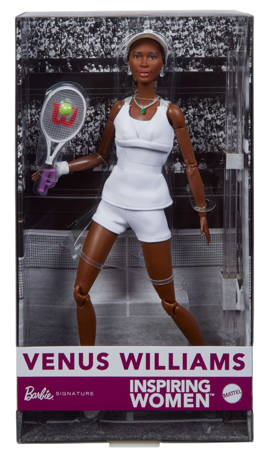 Questa bambola, perfetta per collezionisti e per il gioco, offre un’esperienza autentica a bambini e appassionati di tennis. Il modello ispirato a Venus Williams ha lunghi capelli scuri, accessori distintivi e un outfit sportivo ideale sia per il campo sia per l’esposizione.