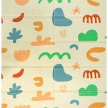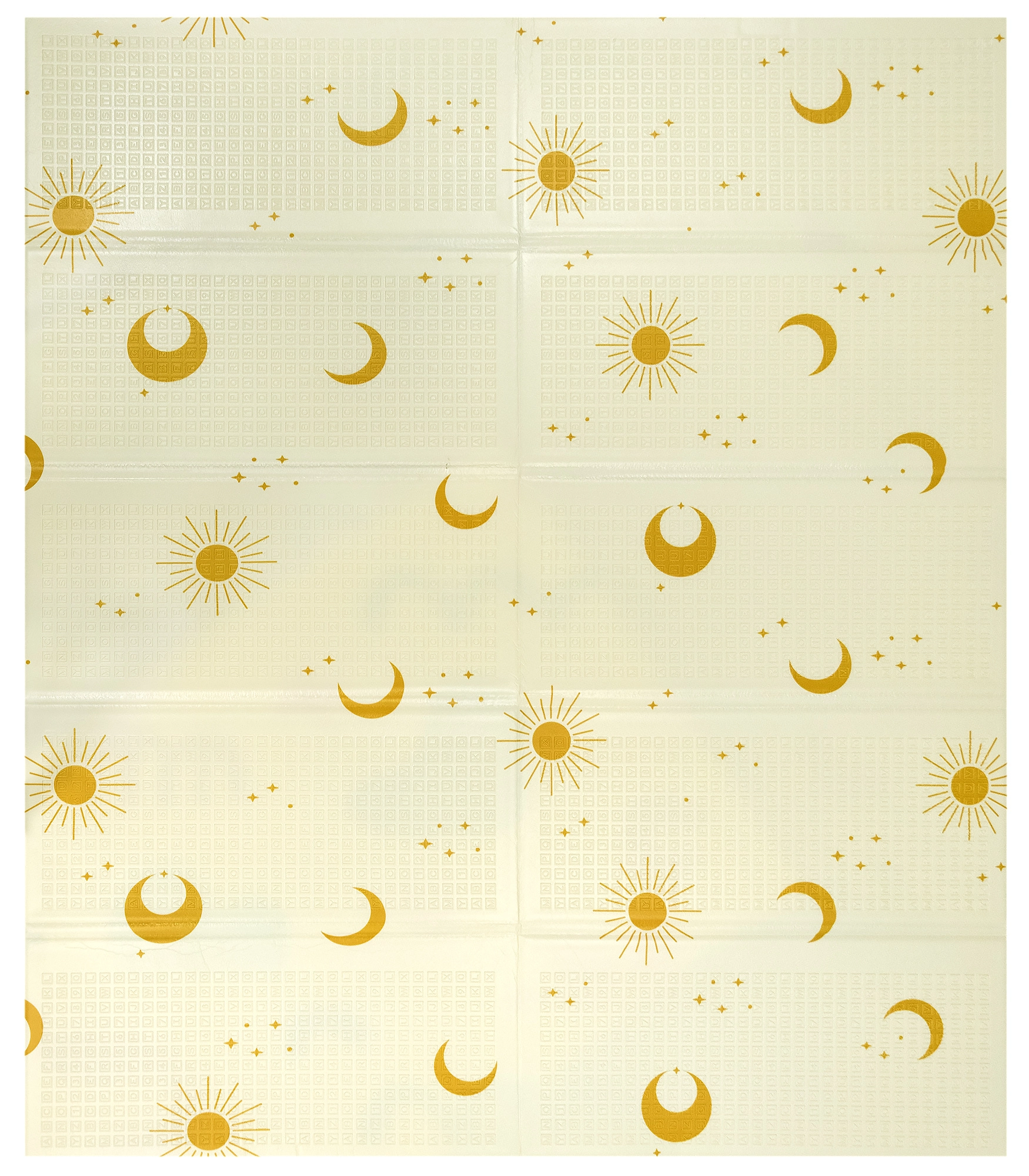 Schiuma XPE premium che garantisce un eccellente assorbimento degli urti, isolamento termico dal pavimento freddo e lunga durata senza odori e senza sostanze tossiche. Il tappetino è adatto alla cameretta, al soggiorno e anche all’esterno – su balcone, in giardino o per un picnic. La stampa bifacciale dai colori delicati con motivi di sole e luna e forme colorate stimola la percezione e si abbina agli interni moderni.