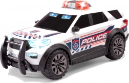 L'auto della polizia FORD INTERCEPTOR colpisce per la lavorazione dettagliata in colore bianco con scritte Police ed elementi scenografici. Premendo il pulsante sul tetto si attivano gli effetti luminosi e sonori – lampeggianti rossi e blu e una sirena realistica che stimolano l'immaginazione dei bambini e i giochi d'azione.