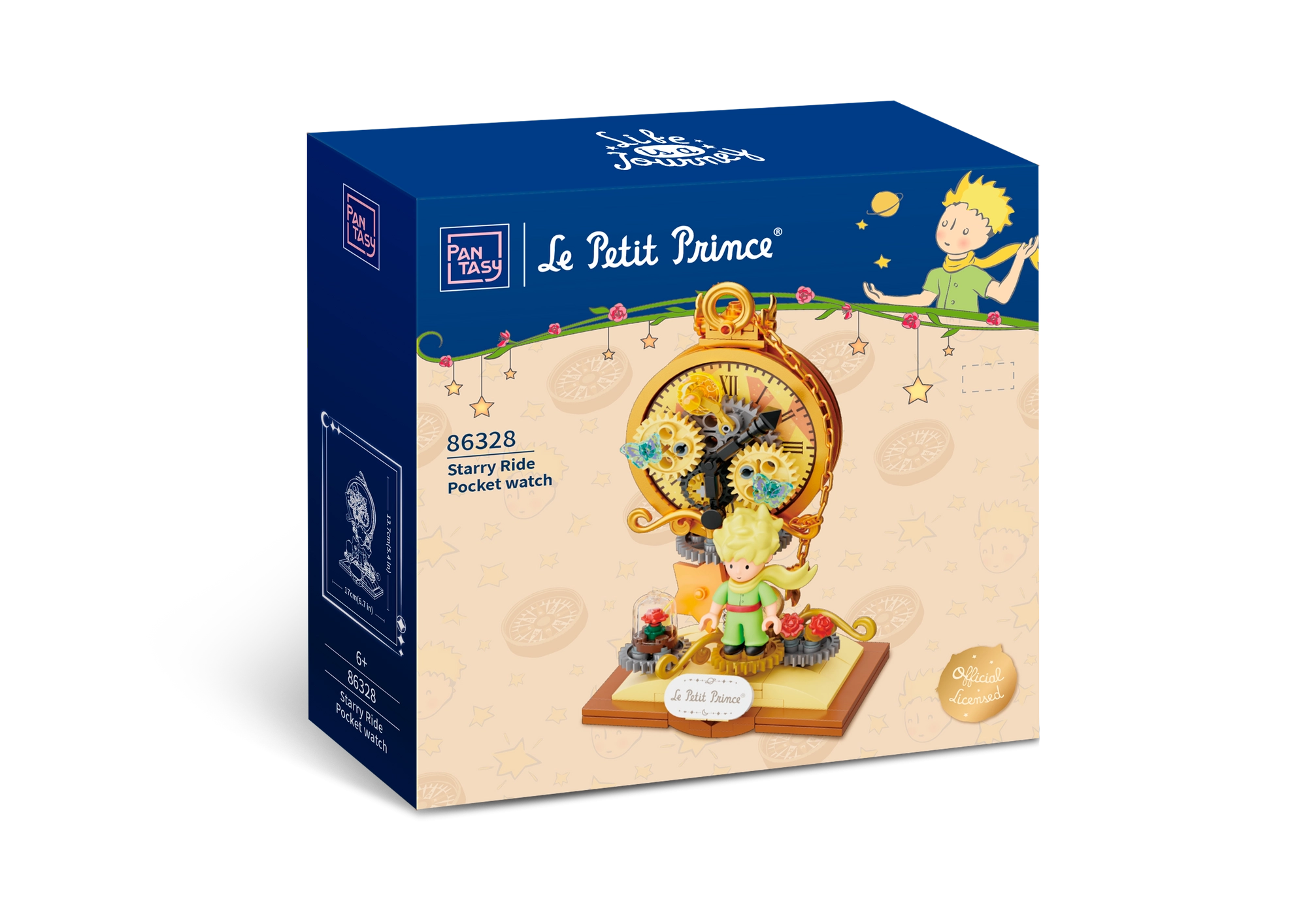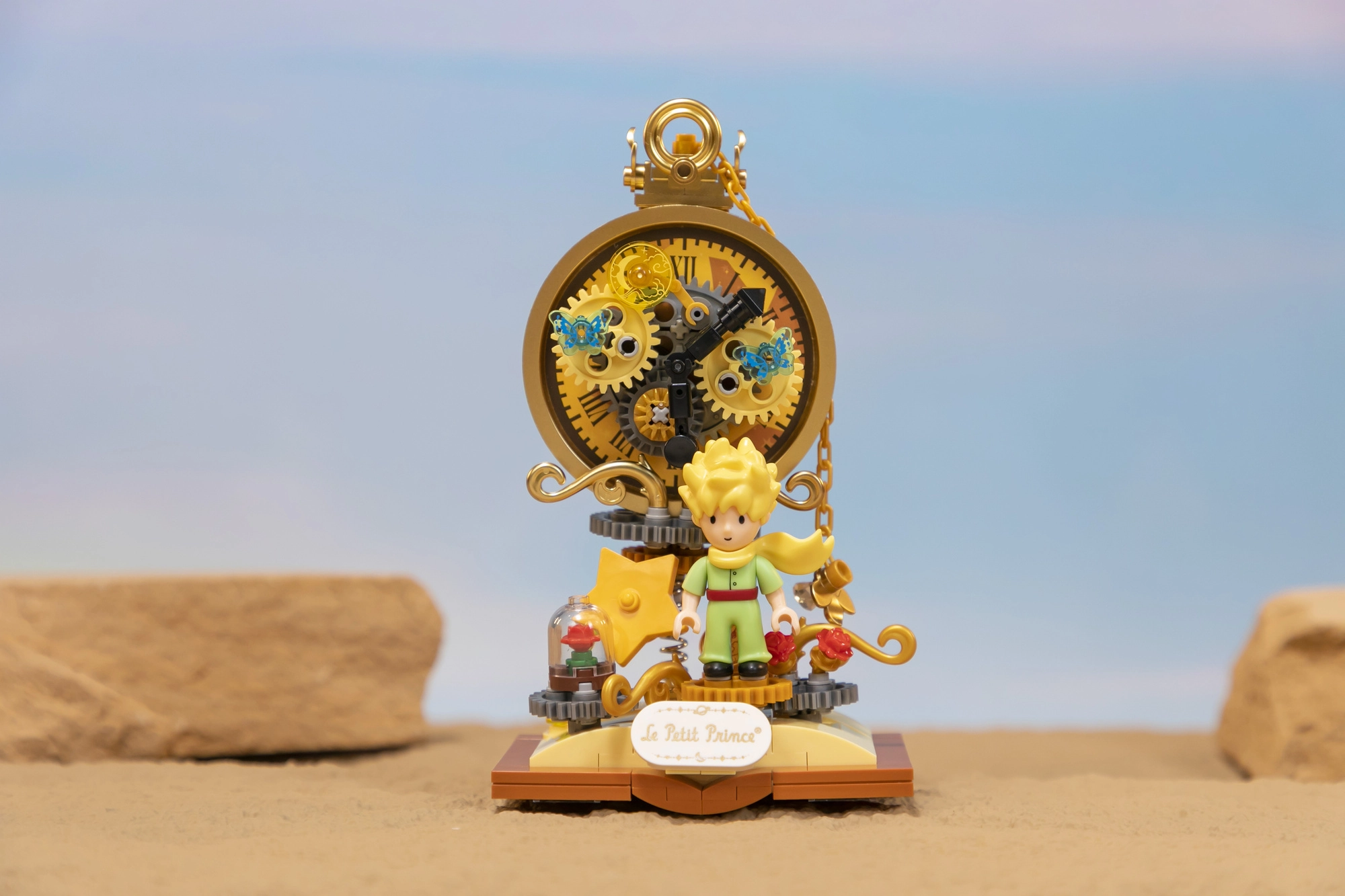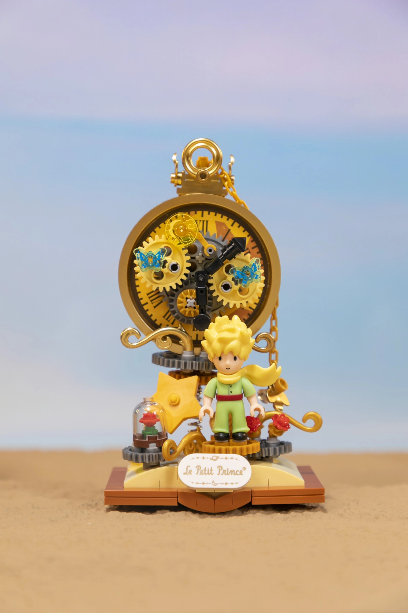 Questo set con licenza ufficiale PANTASY porta la magia del mondo de Il Piccolo Principe in una decorazione suggestiva: il Piccolo Principe davanti a un quadrante stilizzato con ingranaggi dorati, completato dalla simbolica rosa sotto la cupola e da dettagli stellati. Le tonalità pastello e le linee delicate evocano le illustrazioni originali, facendo risaltare il modello su una mensola, sulla scrivania o nella cameretta.