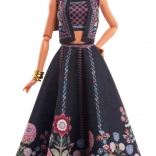 Questa bambola straordinaria è stata progettata in collaborazione con la celebre stilista ANITA DONGRE, nota per la moda etica e il sostegno alle artigiane delle aree rurali dell’India. Lo stile è ispirato al motivo dei “fiori a mezzanotte”, combina colori intensi, motivi delicati e una lavorazione di prima classe, caratteristica della collezione Barbie Signature.