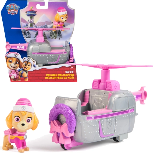 L'elicottero natalizio di Skye del marchio Spin Master porta ai bambini l'atmosfera autentica della serie PAW PATROL. Il raffinato elicottero grigio‑rosa con ghirlanda sul muso ha la cabina apribile, in cui si può posizionare la figurina di Skye con berretto invernale. Grazie al rotore girevole e alle tre ruote, i bambini si divertiranno sia con gli atterraggi sia con il “volo” per la stanza.