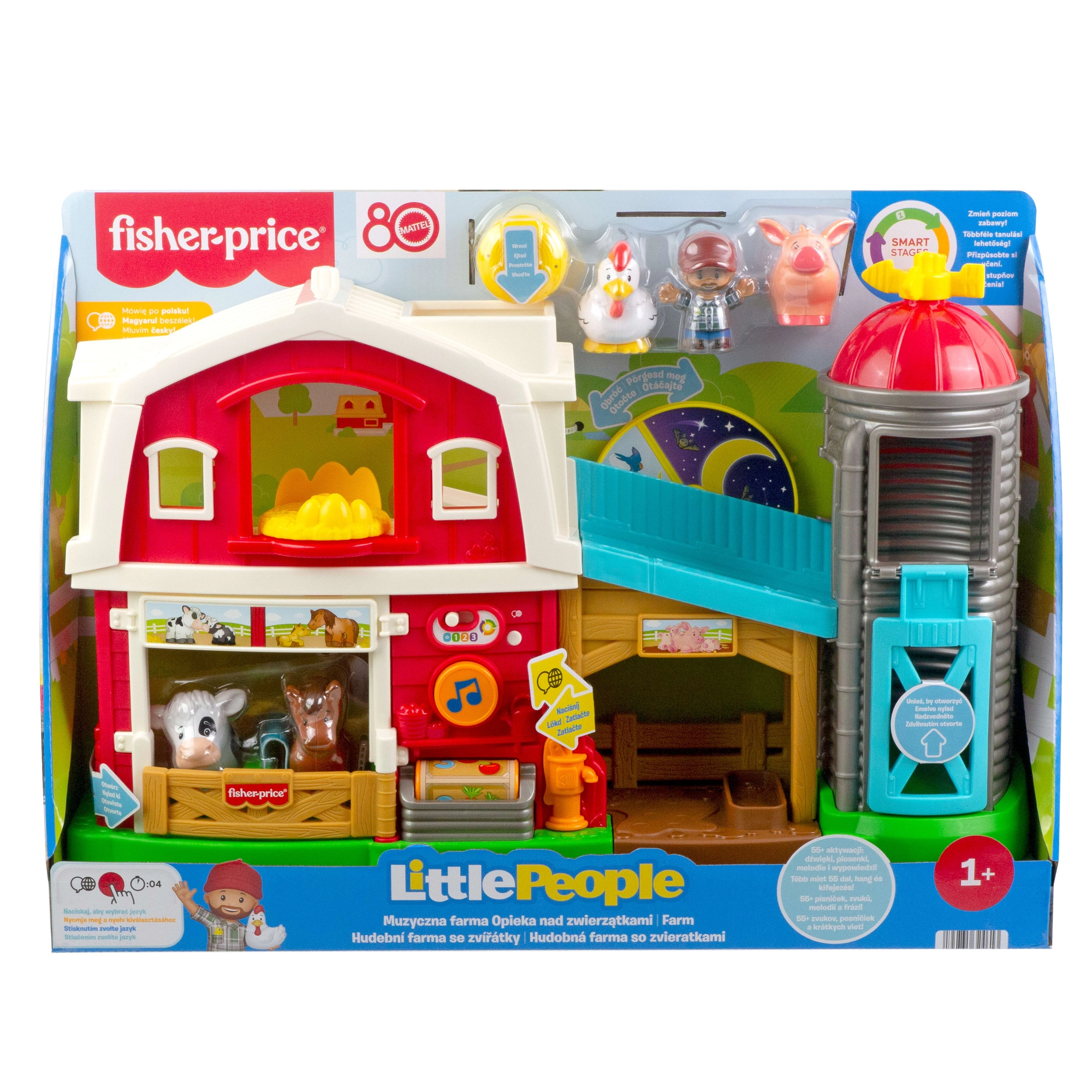 Questa fattoria interattiva Little People trasforma il gioco in un apprendimento divertente. I bambini possono aprire e chiudere i portoni, passare dalla giorno/notte, far scendere il balla di fieno dal silo e sistemare gli animali nei loro box. I grandi comandi, il pulsante con la nota e il selettore delle modalità sono ideali per le piccole mani.