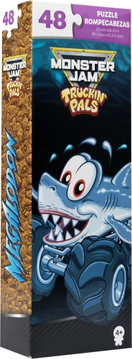 Scopri il divertimento con il puzzle MONSTER JAM Truckin' Pals, che una volta completato rivela un’immagine dinamica del monster truck Megalodon che ricorda uno squalo. Grazie ai 48 pezzi robusti, il puzzle è ideale per bambini dai 4 anni che iniziano a familiarizzare con i puzzle.