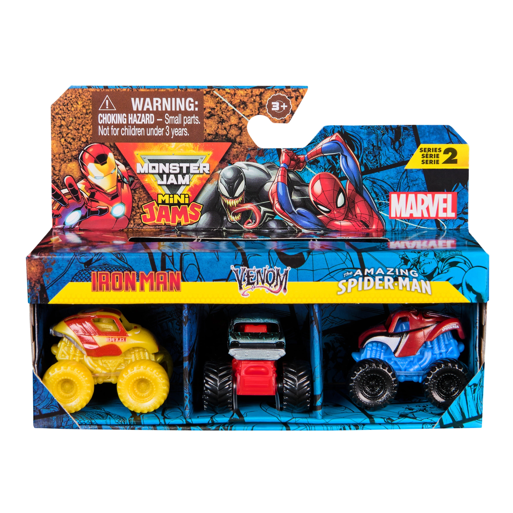 - 3× mini monster truck (IRON MAN, VENOM, SPIDER-MAN)