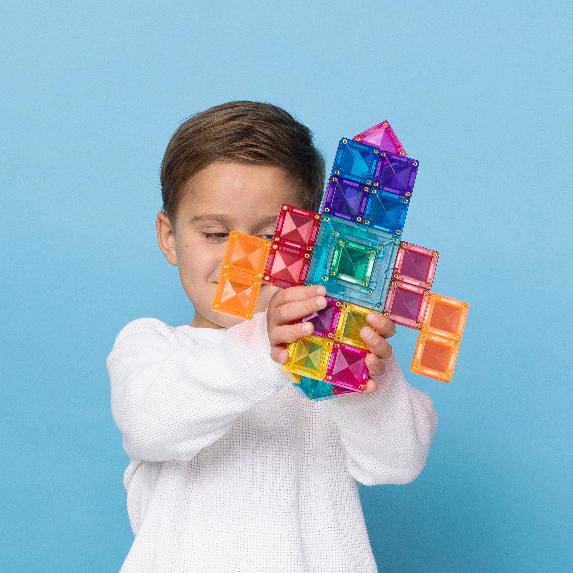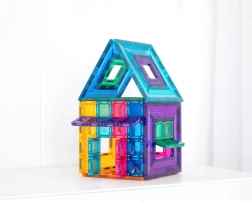 I pezzi si attraggono da tutti i lati e restano saldamente uniti. I bambini costruiscono facilmente torri alte, ponti e forme geometriche complesse senza crolli inutili.