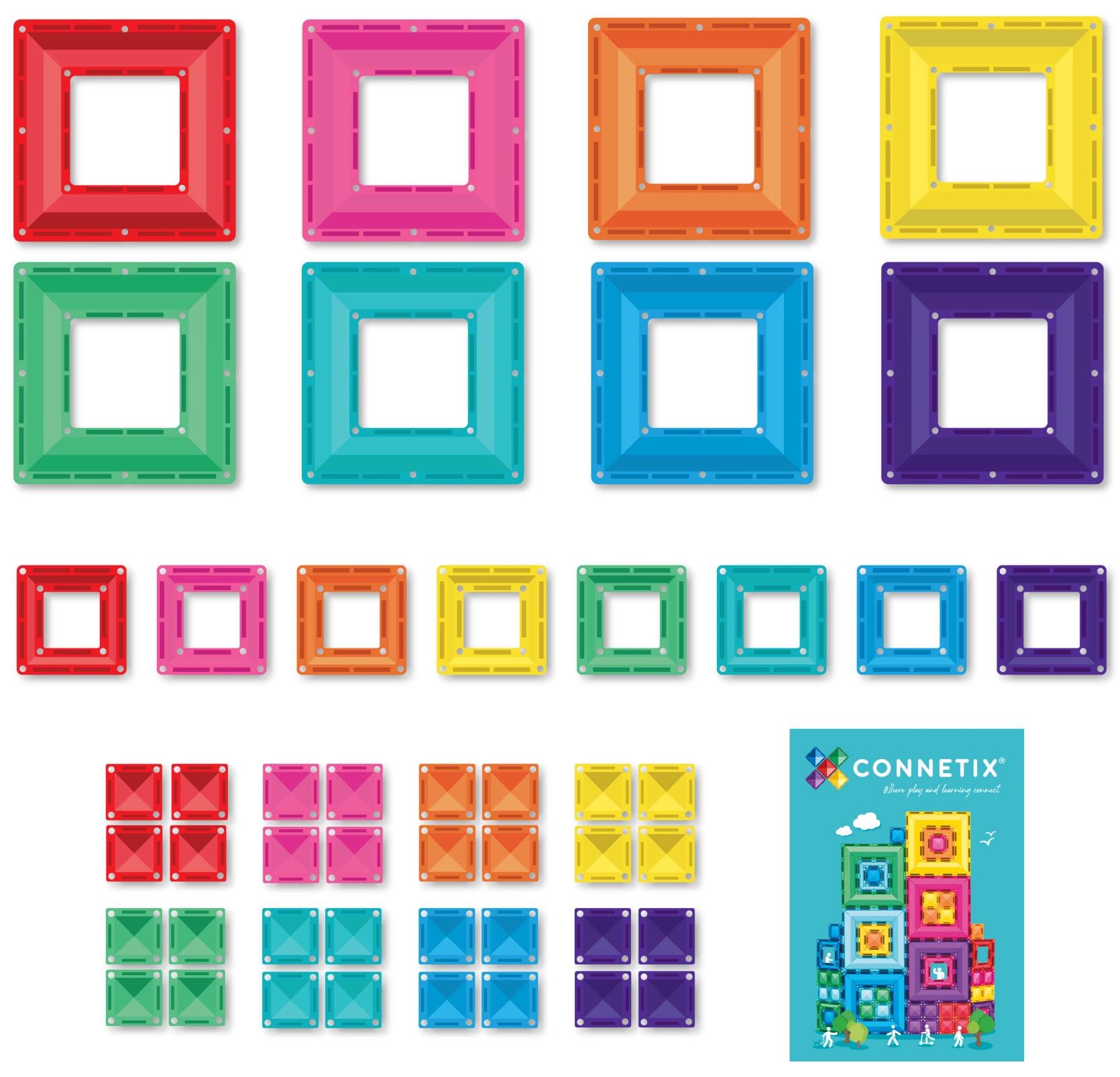 Il set include cornici a portale per elementi architettonici d’impatto e pratici piccoli quadrati per costruzioni dettagliate. Ideale per il gioco a casa, asili, attività Montessori e terapia sensoriale. I pezzi sono compatibili con altri set CONNETIX, così puoi ampliare gradualmente la tua collezione.