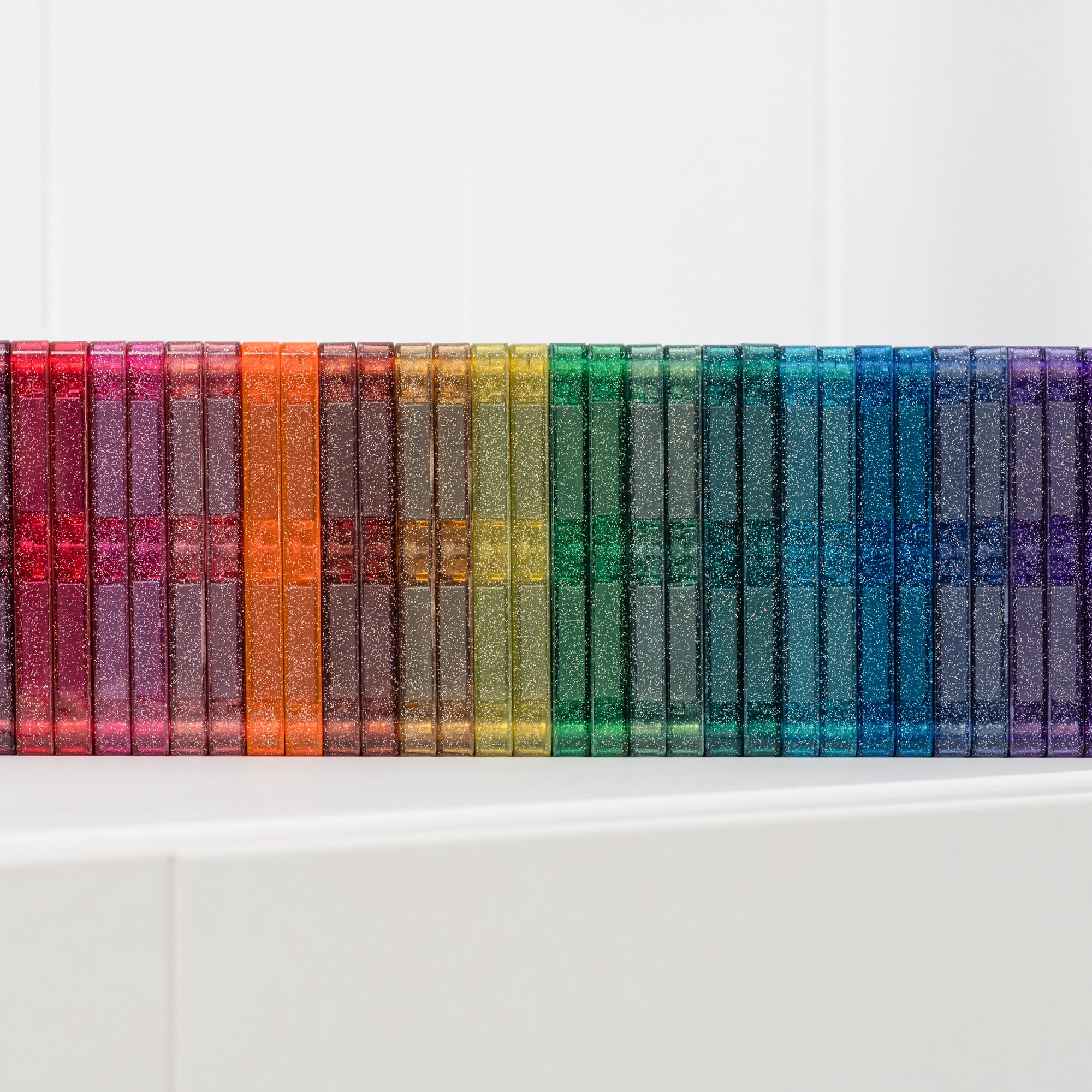 - Tessere traslucide scintillanti, bordi arrotondati, design resistente