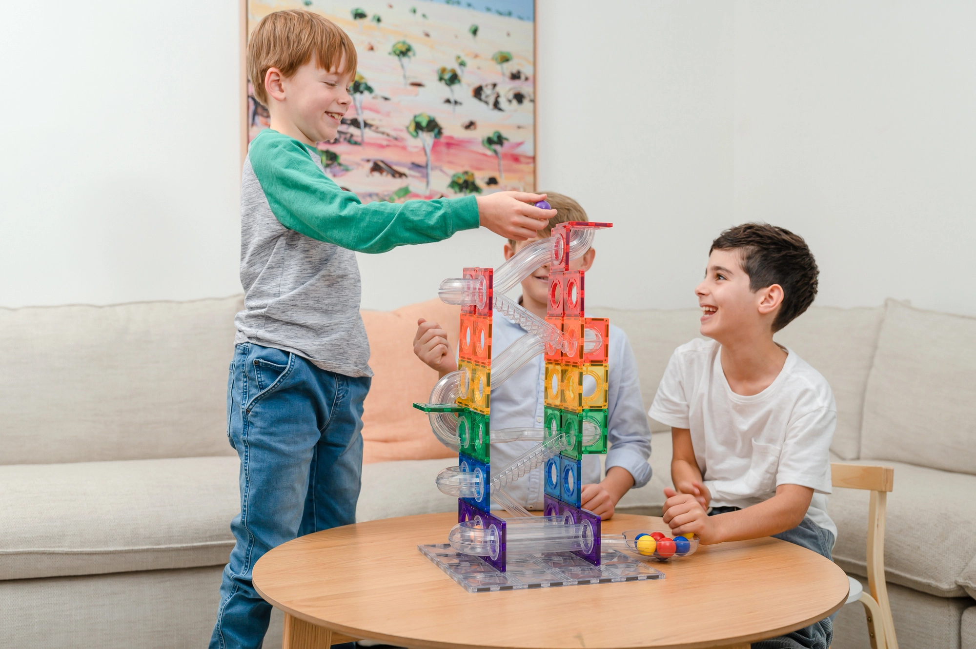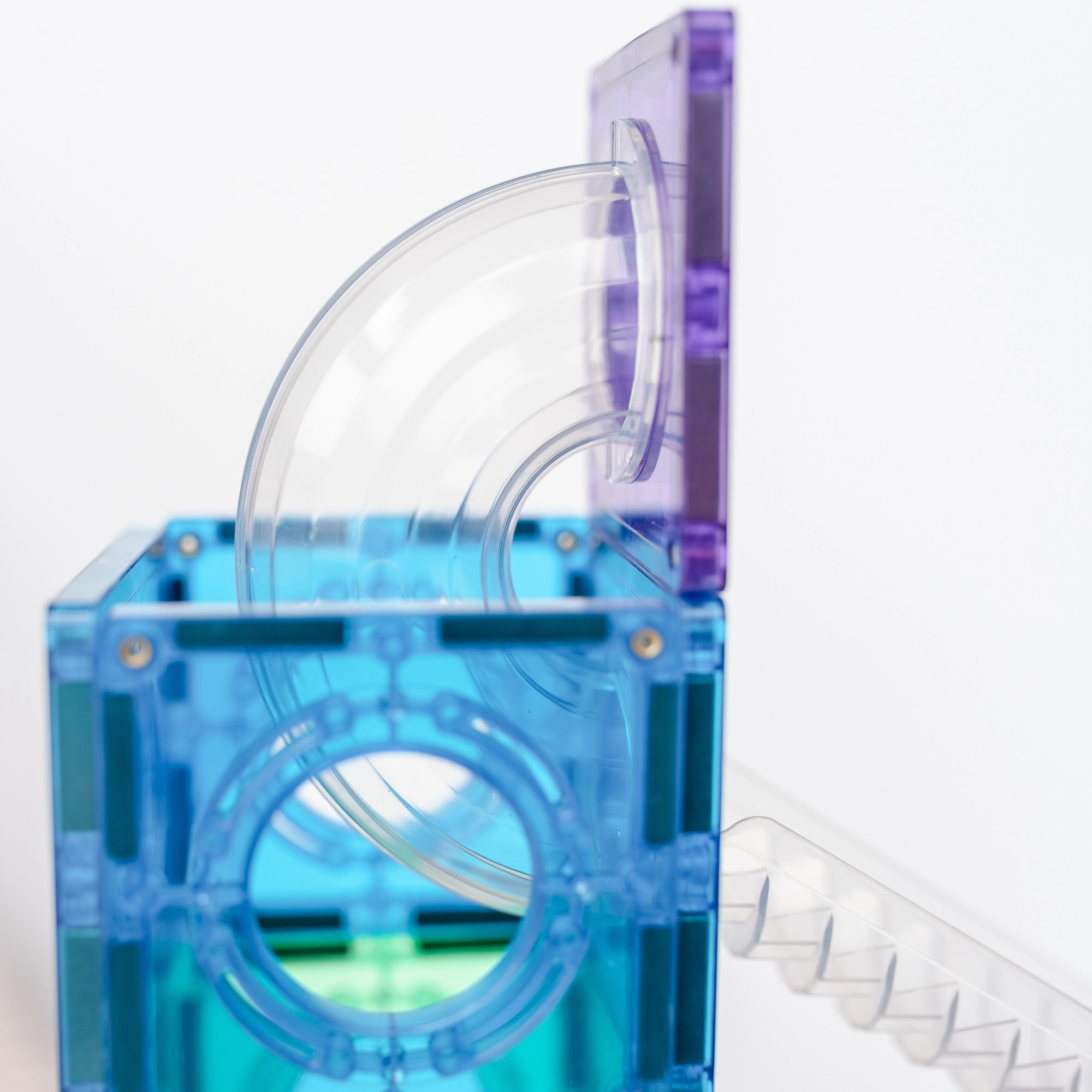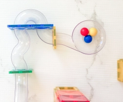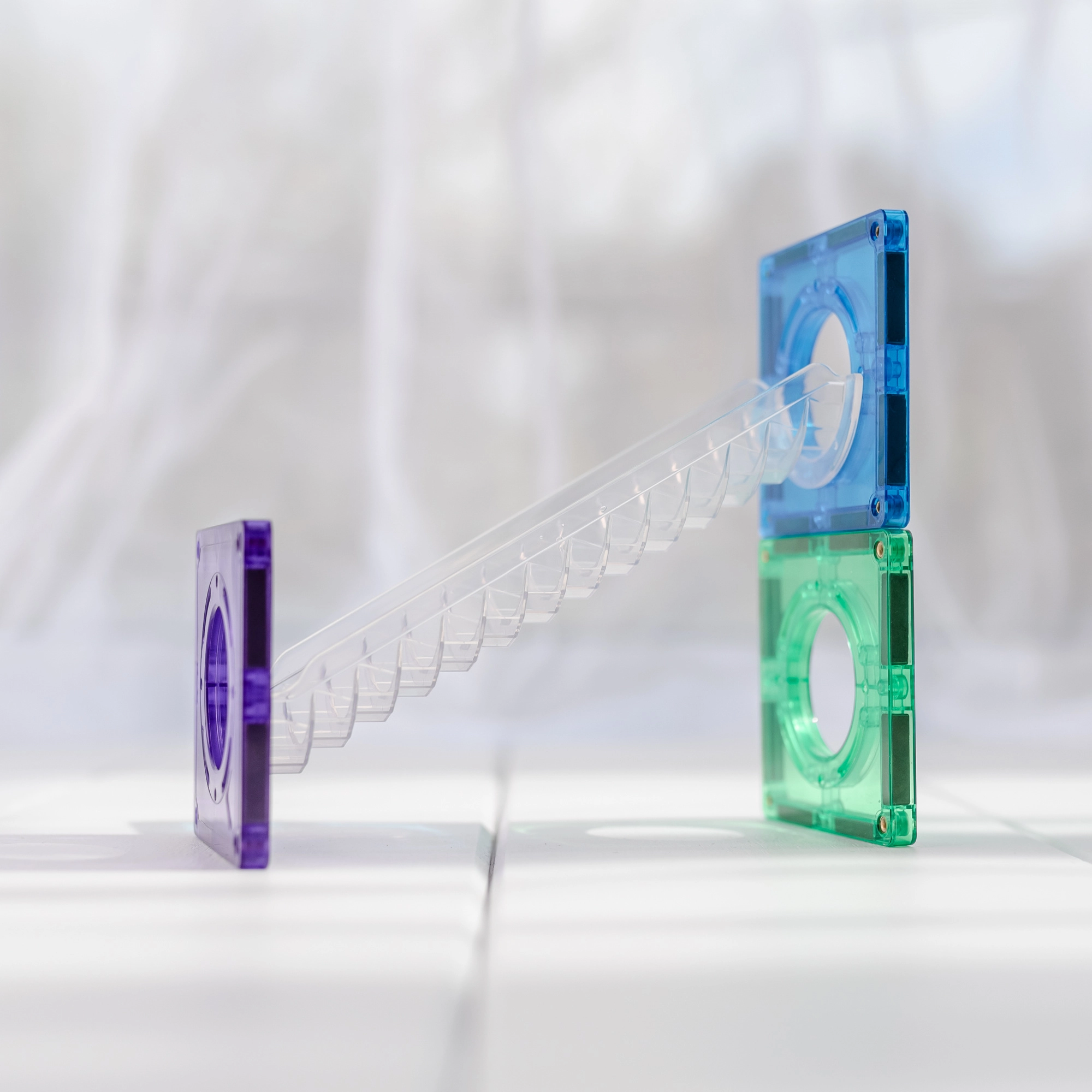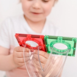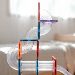 Costruisci torri colorate, ponti e piste per biglie ingegnose, osserva il percorso delle biglie attraverso i tunnel trasparenti e scopri i principi di gravità, velocità ed equilibrio. Le tessere Connetix nei colori dell’arcobaleno hanno magneti saldamente ribattuti che si attraggono da ogni lato, così le costruzioni restano stabili e lo “scatto” all’aggancio è estremamente soddisfacente.