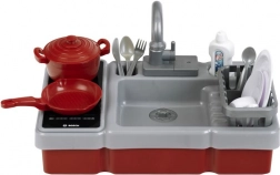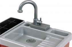 Questo set dettagliato consente ai bambini di imitare in sicurezza le attività quotidiane in cucina. Grazie al rubinetto funzionante con ricircolo dell’acqua e al piano a induzione touch con luce e suono, il gioco è estremamente realistico e divertente. Non mancano scolapiatti, spazio per il “detergente” e un ricco set di accessori per servire e cucinare.