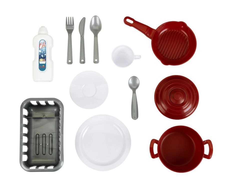 Il moderno colore grigio si abbina facilmente ad altre cucinette e accessori. L’alta qualità costruttiva garantisce un uso sicuro e una facile manutenzione. Le dimensioni sono adatte alle mani dei bambini e favoriscono lo sviluppo della motricità fine, della fantasia e del gioco di ruolo.
