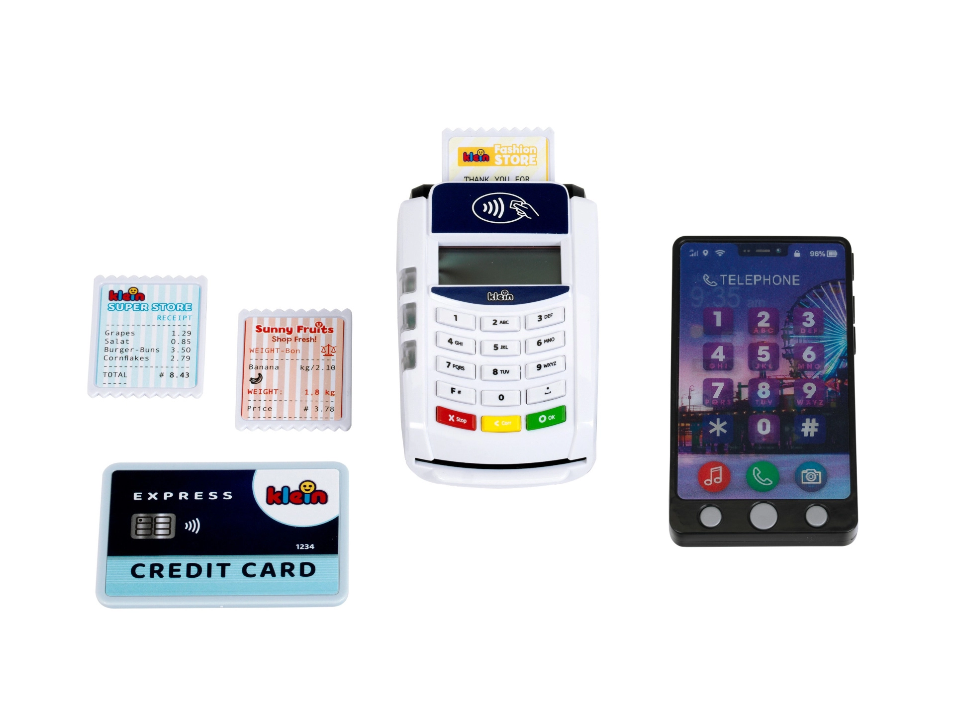 Scopri il divertente gioco del negozio con il terminale di pagamento KLEIN, che permette ai bambini di imitare veri acquisti. Grazie ai pagamenti contactless, ai realistici suoni e agli effetti luminosi, ogni transazione diventa un’esperienza divertente. I bambini sviluppano abilità sociali, immaginazione e alfabetizzazione finanziaria, il tutto in modo giocoso.