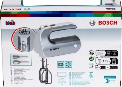 Regalate ai bambini un divertimento come in una cucina vera. Il frullatore con licenza BOSCH in versione argento riproduce fedelmente un elettrodomestico reale: premendo il pulsante, le fruste ruotano e il cursore imita la regolazione della velocità. Grazie agli accessori rimovibili, i bambini imparano anche le buone abitudini di ordine e pulizia.