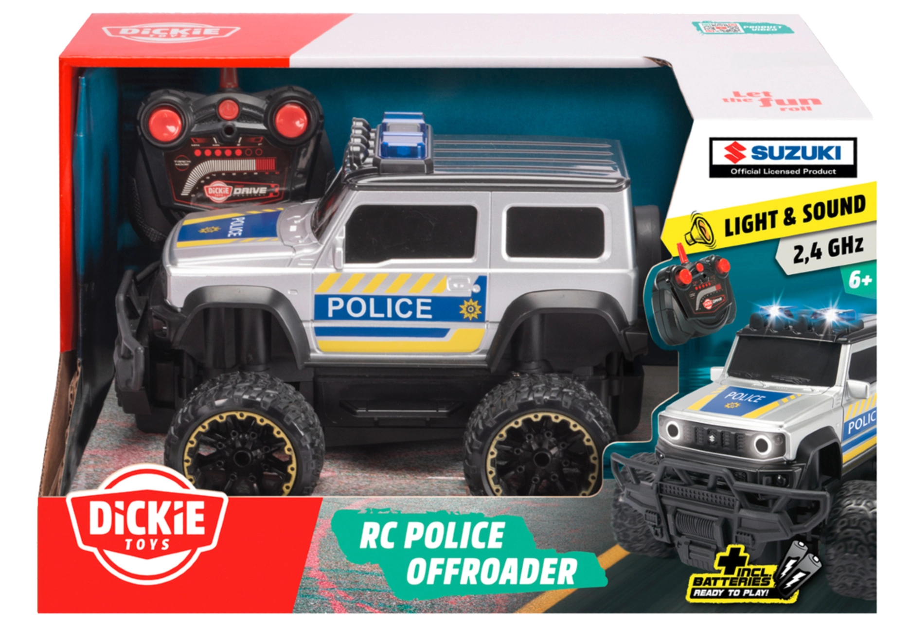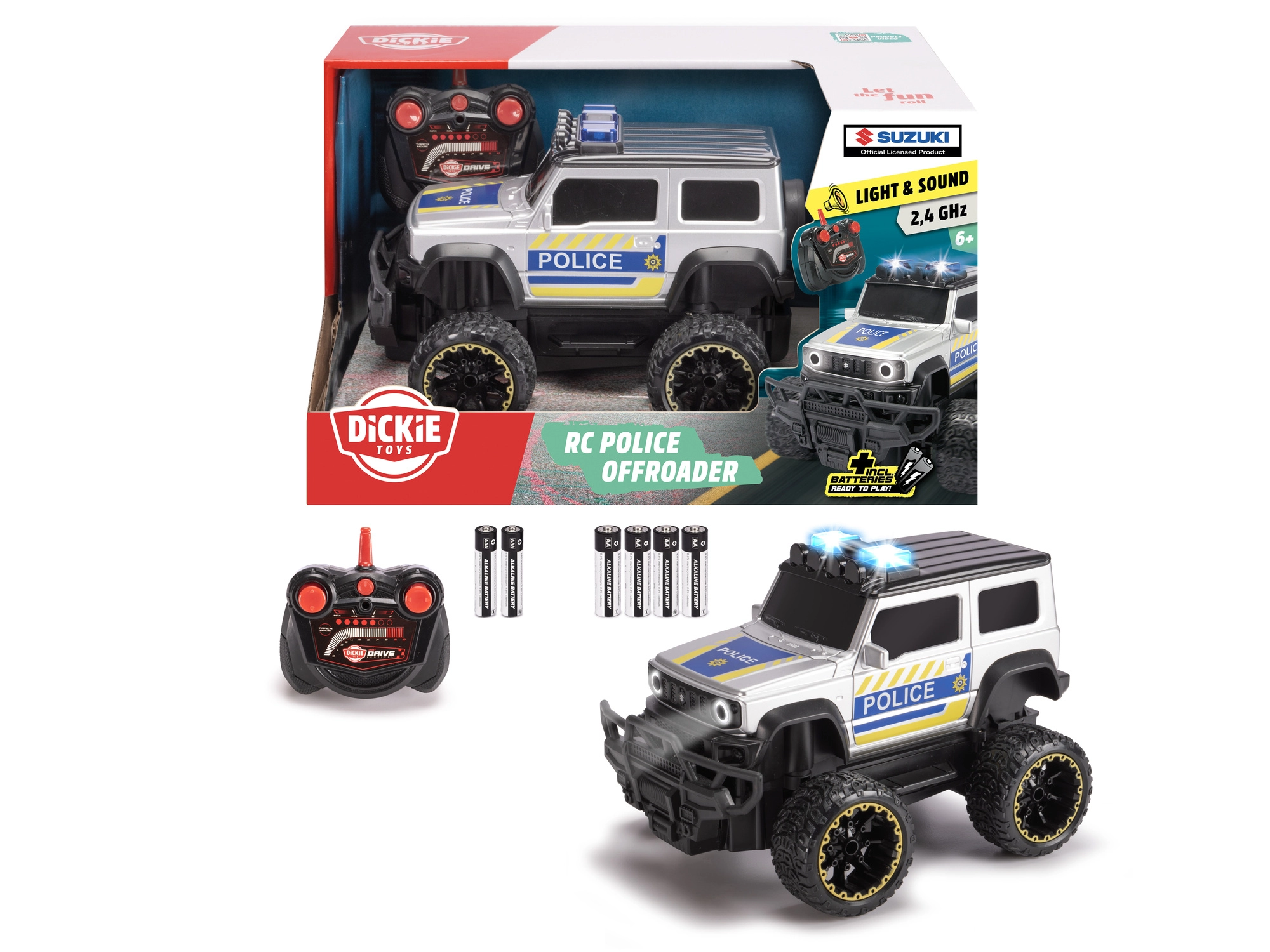 Parti all’azione con il realistico fuoristrada della polizia RC SUZUKI in scala 1:24. Grazie al telecomando a 2,4 GHz, ai effetti luminosi e sonori e alle batterie incluse, è pronto a sfrecciare subito dopo l’unboxing. Ideale per i piccoli appassionati di azione e motori.